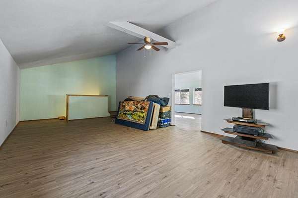 - Breakfast Bar, Ceiling Fan(s), Pantry, Primary Downstairs, Shower/Tub Combo, Soaking Tub, Solid Surface Counters, Vaulted Ceiling(s)