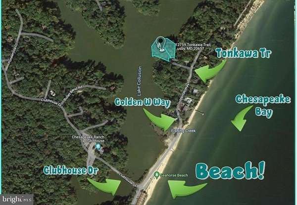 Welcome to a truly special waterfront retreat on Tonkawa Trail, where stunning natural beauty meets convenience and coastal charm. Perfectly situated on a rare 1-acre lot with water on three sides, this unique property offers panoramic views, serene privacy, and endless opportunities to relax and reconnect with nature. Enjoy the sights and sounds of the Chesapeake Bay just steps away-Seahorse Beach is only a 4-minute walk-making it easy to enjoy swimming, kayaking, or peaceful evening strolls by the shore. The setting captures the essence of coastal living while still providing quick access to city conveniences. Whether you're looking for a weekend escape or a full-time waterfront residence, this location can't be beat-Washington, DC, Baltimore, and Annapolis are all within an easy drive, making it ideal for commuters or those seeking the perfect balance of tranquility and accessibility. Come experience the best of Southern Maryland waterfront living-where every sunrise and sunset feels like your own private show.