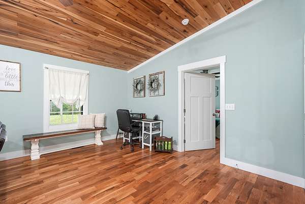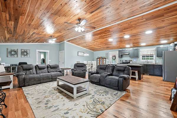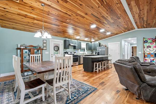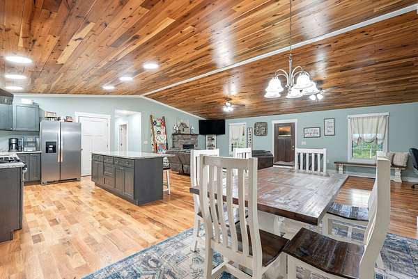 This farmhouse sits atop a hill that provides mile wide views, AMAZING SUNSETS & PRIVACY ~ 1860 sq ft DETACHED SHOP with leanto ~ 63+ ACRES ~ bring your animals to graze the lush green pastures or get ready to see wildlife galore on this hunters dream property! The home could be the perfect place to homestead or it could be enjoyed as a hunters lodge paradise. Garden spots, pastures for food plots or animals, CREEK, pond for watering livestock and wildlife ~ HOUSE features: HARDWOOD FLOORING, HARDWOOD CEILINGS, LARGE FRONT & BACK PORCHES, STAINLESS STEEL APPLIANCES, OVERSIZED KITCHEN ISLAND, SHAKER STYLE DOORS, RECESSED PANEL CABINETS, POCKET DOOR, TILE FLOORING, GRANITE COUNTERTOPS, OPEN FLOORPLAN, 4 BEDROOMS, FULL HEATED AND COOLED BASEMENT (SEMI-FINISHED), ALTERNATIVE HEAT SOURCE FOR EXTREME CONDITIONS (HEAT MASTER) 3 GARAGE SPACES