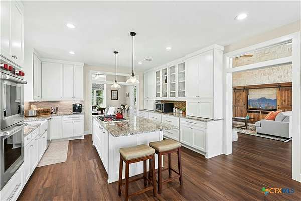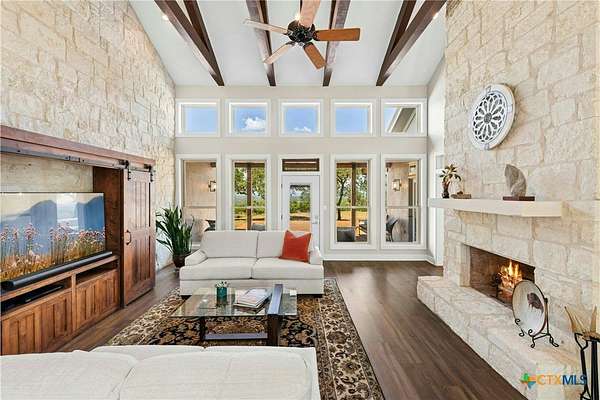 Experience stunning and expansive vistas of the Texas Hill Country from every room in this gorgeous hilltop home. At almost 1600' elevation, you can see for miles and every room showcases the extraordinary landscape. The property is ideally situated between Austin, San Antonio and the Texas Wine Trail. And while it feels far from cities and towns, you're just minutes from Dripping Springs, Blanco and Johnson City, and less than an hour from Austin, San Antonio and Fredericksburg. The home was completely remodeled in 2024 with comfort and luxury in mind. Once inside, you'll find multiple living and dining areas, a large gourmet kitchen with premium Wolf and Subzero appliances, a luxurious primary suite, large home office or flex room, oversize walk-in pantry, and two private bedrooms and bath upstairs. A newly constructed "gentleman's barn" offers ample parking for multiple cars or an RV, as well as a workshop. The building's design allows for the addition of a 2nd floor guest apartment. The property's 14+ acres feature a grotto, hiking trails, and abundant wildlife. The Wildlife Exemption gives you the opportunity to enjoy native game--and a significant tax break. When you walk the trails you'll find your favorite quiet space or views of the Hill Country. As part of the Ranches at Dripping Springs development, you'll enjoy a thoughtfully planned community on almost 400 acres that honors and celebrates the topography, flora and fauna. Are you looking for your primary residence or a 2nd home? A place to be near your students in Austin, San Marcos or San Antonio? Embrace luxury and tranquility in this Hill Country gem!