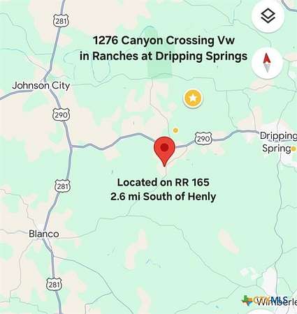 "Ranches at Dripping Springs," "Canyon Xing 78620," or "Canyon Crossing Vw, Dripping Springs," At Hwy 290 W & RR 165 near Henly, turn left from Austin/Dripping Springs & right from Hwy 281. Traffic moves fast-easy to miss the gate. Drive 2.5 miles; the Ranches at Dripping Springs will be on your right (large white and green sign). Enter the gate and continue uphill to Lot 19. Gate open 6am-6pm.