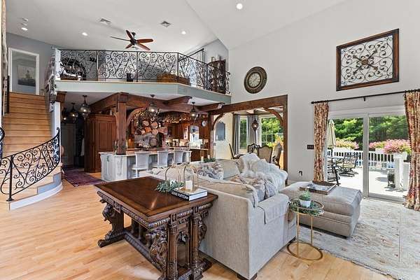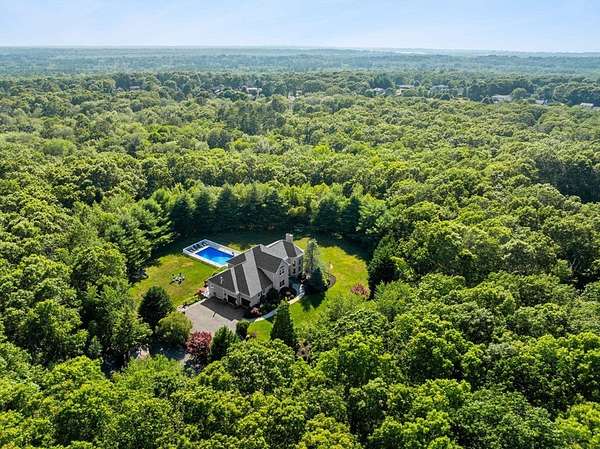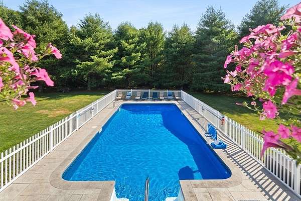 Welcome to this private luxury retreat on over 12 acres in the heart of Dartmouth. A winding drive leads to a grand estate where timeless elegance meets modern sophistication. Inside, enjoy soaring ceilings, rich hardwood floors, and sunlit open living spaces. The custom gourmet kitchen boasts Wolf and Sub-Zero appliances, custom cabinetry, and an oversized island perfect for entertaining. The serene primary suite features a spa-like bath with soaking tub, walk-in shower, and dual vanities. French doors open to a resort-style backyard with an inground pool, lush gardens, and expansive patio. The finished lower level includes a fireplace, full bath, and flexible space. Additional highlights: 3.5 baths, two-car garage, storage shed, irrigation system, and professional landscaping. This exceptional property blends comfort, luxury, and privacy. Showings by appointment only-please do not drive by.