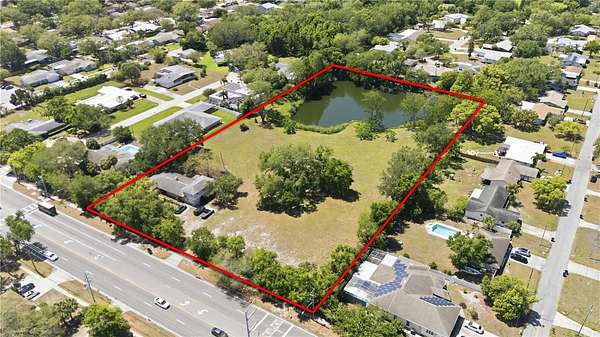 Pinellas County developers and investors! This is a rare opportunity to acquire a 4.75-acre approved residential development site at 1276 S Belcher Rd in a prime Clearwater location. The City of Clearwater has approved plating for a 12-lot single-family subdivision with lot sizes ranging from approximately 5,500 to 9,760 square feet, with the ability to phase construction by building the first 9 homes while retaining the existing income-producing residence. Removal of the existing home will allow for completion of the final 3 lots. The property currently generates $3,350/month in rental income with a lease in place through October 2026, helping offset holding costs including taxes, insurance, and landscaping during development of the first 9 homes. Located in a non-flood, non-evacuation zone with no existing HOA, the new owner has full control over community design and guidelines. The site features a 3/4-acre pond believed to be spring-fed and connected to Allen’s Creek. The existing home is well-maintained with spacious living areas, large bedrooms, a split floor plan, sunroom, and a separate mother-in-law suite, enhancing its rental appeal. The location offers exceptional connectivity with immediate access to SR 60 and just minutes to US-19, providing easy access to Tampa, St. Petersburg, and major employment hubs. St. Pete-Clearwater International Airport is approximately 6 miles away, with Tampa International Airport about 20 minutes away, and shopping, dining, beautiful beaches, and daily conveniences nearby. A unique, income-producing development opportunity with an approved path to 12 single-family homes in a prime Clearwater corridor.