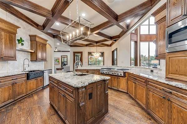- Built-In Features, Chandelier, Decorative Lighting, Double Vanity, Eat-In Kitchen, Granite Counters, High Speed Internet Available, Kitchen Island, Multiple Staircases, Open Floorplan, Pantry, Vaulted Ceiling(s), Walk-In Closet(s), Wet Bar