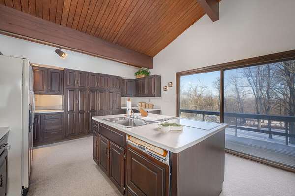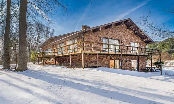 Est $2,765/moWOW! Over 3800 square feet of finished living space near Knox Lake, 2 kitchens, wide-open spaces, centralized atrium accessible from 5 main-floor rooms. Huge stone fireplace in living room and large brick fireplace on the lower level. Large rooms, wide hallways, open rooms, quality built, and a great value. Lots of storage space in the basement as well as an office or craft room. Wrap around deck, wooded back yard, seasonal lake view, multiple (12) parcels keep your home private and well-spaced from other structures. 2 car attached garage, shed, and circular driveway. A few cosmetic updates will have you living large.