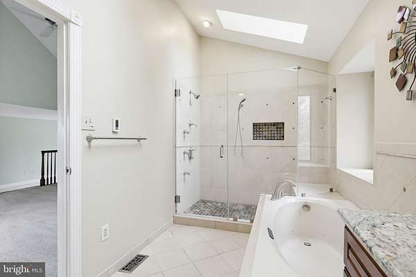 Gorgeous custom home on nearly 3 1/2 acres in the River Hill school district. Grand foyer with vaulted ceiling; gleaming hardwood flooring; and curved hardwood staircase. Separate Dining room with chair rail and crown molding; glorious hardwoods. Living room boasts woodburning fireplace and crown molding. Gourmet kitchen with vaulted ceiling; pendant and recessed lighting; skylights; stainless steel appliances; granite countertops; soft close drawers and doors; 42" cherry cabinets; and luxurious hardwood flooring. Brand new insulated slider opens to expansive paver patio with retaining walls. Family room boasts an entire wall of custom designer palladian windows overlooking the backyard sanctuary; vaulted ceiling with fan; wet bar; woodburning fireplace; skylights; hardwoods. New insulated doors to patio and backyard. 1/2 bath with pedestal sink convenient to family room. Enormous primary bedroom on main level complete with sitting room; walk-in closets. Primary bath has granite countertops; separate jetted soaking tub; huge tiled shower with multiple showerheads and pulsing jets; and skylights for tons of sunshine. Upper level boasts 4 generous bedrooms with ceiling fans and two full baths. Lower level offers expansive entertaining options to include a recreation room with tile flooring; wet bar; microwave and refrigerator. Separate game room; separate office and den with built-in shelving. Full bath with large shower. Walk-in cedar closet. Storage and utilities rooms. Extensive hardscape brick patio and retaining walls out back with steps up to sport court. Mud/laundry room as you enter from the garage. EV charger in garage! Upscale neighborhood; no HOA; and Blue Ribbon schools complete this amazing package. Plenty of space for multi-generational living in comfort. Welcome Home!