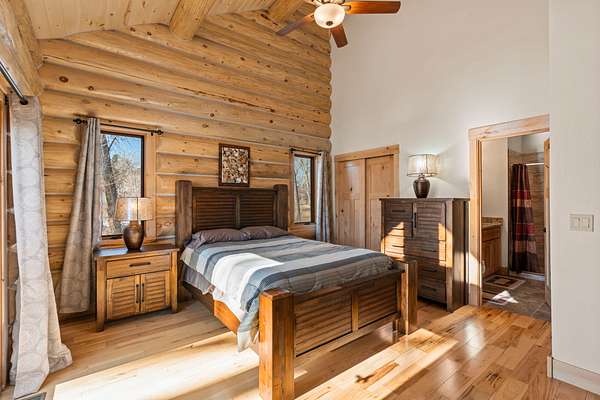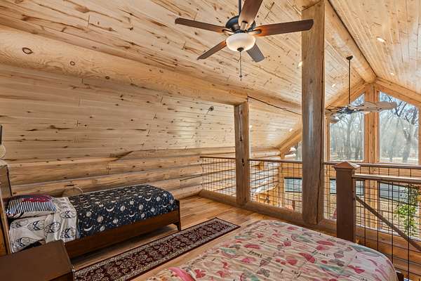 The home features three spacious bedrooms plus as loft bedroom, including two private ensuite retreats designed for comfort and privacy. Warm wood tones, exposed log craftsmanship, and an inviting layout make this residence ideal for both full-time living and memorable getaways. Thoughtfully positioned living spaces take full advantage of the views, allowing you to enjoy changing seasons and abundant natural beauty from nearly every room.
