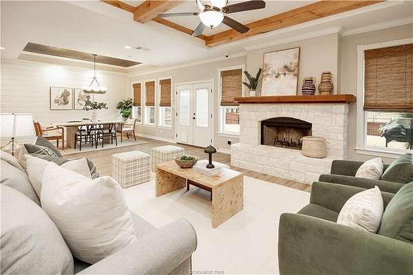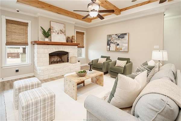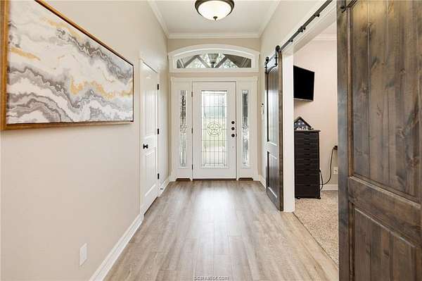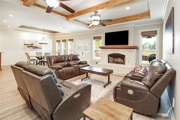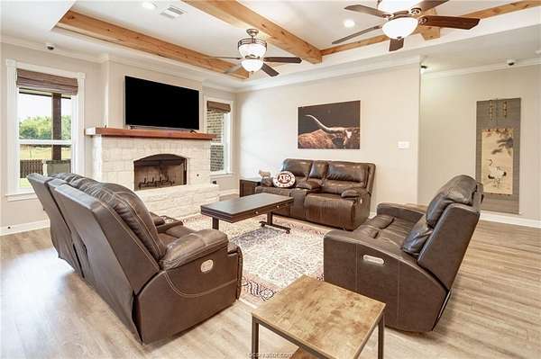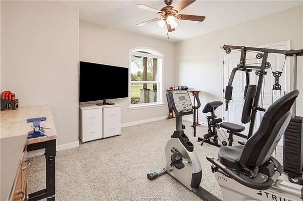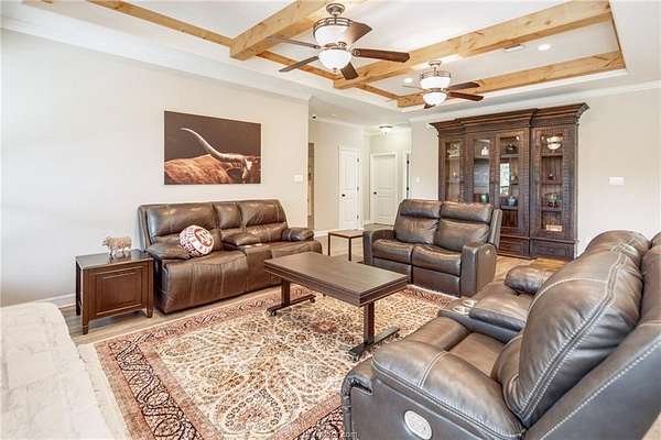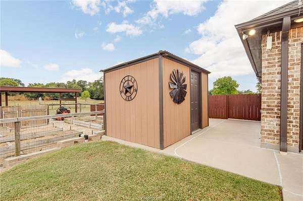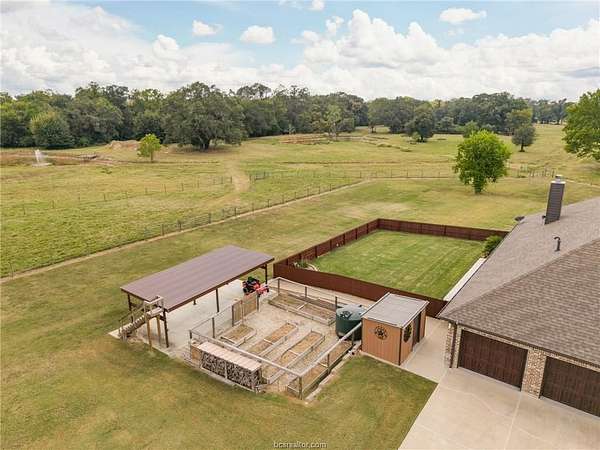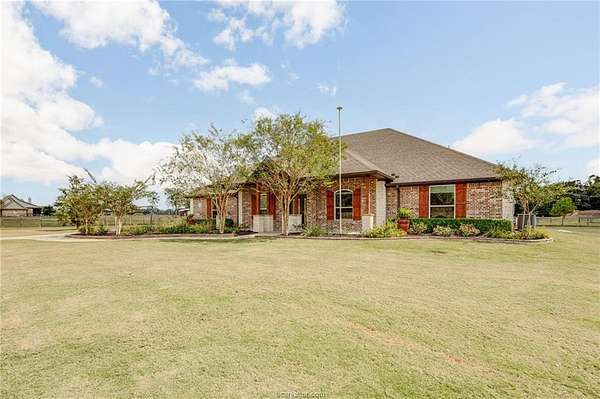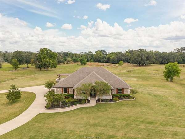Situated in the quiet enclave at Fawn Lake, this impeccably maintained residence is situated on 10.24 pristinely manicured acres. As you approached the property pass through an automatic gate and into the beautifully landscaped circle drive leading up to the homesite and three car garage. Enter the foyer and to the left you have the owner's study. Continuing into the heart of the home you find the kitchen/dining/living great room with sweeping views of the rear acreage. This kitchen has custom site-built cabinetry, stainless appliances, granite counter with chiseled edge, and central eat-in island. The dining room is large enough for 8-10 seating. The oversized living area has an Austin Stone fireplace surround with cedar mantle and beamed ceiling. The primary suite is positioned at the rear of the home with a massive en-suite bath hosting double vanities, doorless walk-in shower, and soaking tub. Three well-proportioned guest rooms and 2.5 additional baths are perfect for family or company. Attic is foam insulated with ample storage. Dedicated raised bed garden area and rainwater harvesting tank. Property has a fenced backyard, multiple cross fenced pastures, pond with dock, and a rear seasonal creek creating the perfect treed buffer to the site. Small storage building on slab plus a metal frame/covered awning for equipment. Ag tax exemption in place. Do not miss this rare listing located 10 minutes from the center of Bryan/College Station!