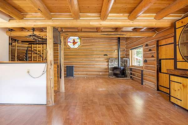 Tucked into the breathtaking Rock Creek corridor just outside of Philipsburg, this well maintained log home offers a rare opportunity to live where Montana's legendary fly fishing and outdoor recreation are right at your doorstep. Set on 1.72 acres and bordered by Deer Lodge National Forest, the property boasts mountain views, including a striking view of Squaw Rock, and direct access to the wilderness. The 2,431 sq ft home features 2 bedrooms and 3 bathrooms across three spacious levels. The open concept main floor connects the living room, dining area, and kitchen, anchored by two cozy wood-burning stoves. Upstairs, the primary bedroom includes an en-suite bath and access to a private balcony overlooking the forested surroundings. The lower level offers additional living space, a second bedroom, and a full bathroom. Enjoy Montana's seasons from the covered deck or tend to your plants in the attached greenhouse. An artesian well supplies the property with a reliable and consistent water source, while a large detached shop with two bay doors provides space for vehicle storage, projects, or gear. Located approximately 30 minutes from the historic town of Philipsburg, this property offers the perfect balance of seclusion, natural beauty, and access to small-town charm. Whether you're seeking a year-round residence or a recreational basecamp, this is a place where nature and comfort meet.