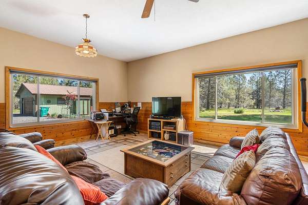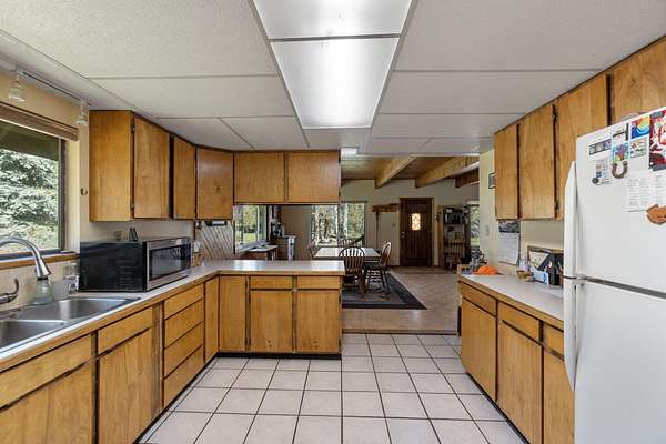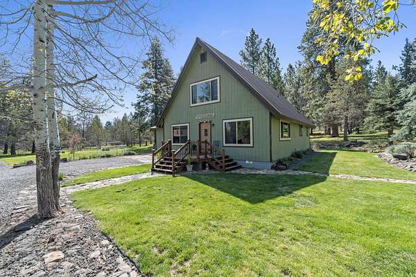 Charming chalet-style custom home on peaceful 2.06 acres in beautiful Keno, OR! This 4 bedroom, 2 bathroom property is perfect for those seeking space, privacy and a connection to nature. Fenced and ready for horses or animals, with a barn & stalls and tons of room to roam. Over-sized garage features a workshop for all your projects! Inside, enjoy a well-built and welcoming home featuring a spacious entry, open living, dining and kitchen area with abundant counter space and a large pantry, plus separate laundry. Flexible layout with a second living space and generously sized bedrooms. Relax in the walk-in tile shower and appreciate ample storage throughout. Recent upgrades include septic in 2020, windows and more. Step outside to an impressive garden and peaceful setting nestled among the trees, bordering BLM land for added privacy and endless outdoor access. Abundant wildlife and birds frequent your property.
