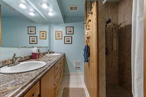 - Breakfast Bar, Built-In Features, Ceiling Fan(s), Double Vanity, Linen Closet, Pantry, Shower/Tub Combo, Tile Shower