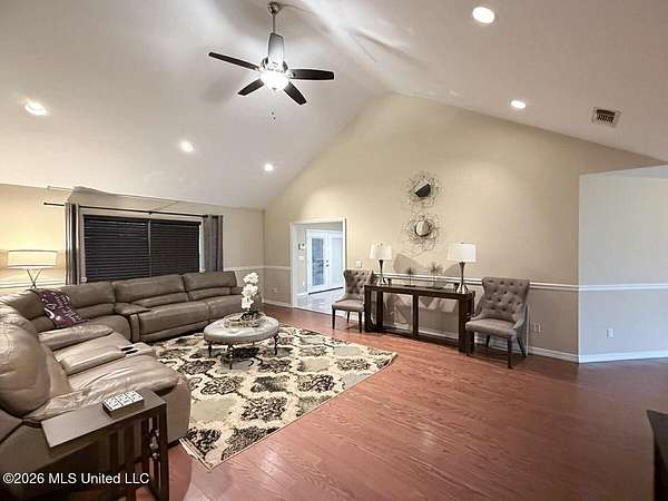 Located in the Central Community of George County, MS, this 4-bedroom, 2-bathroom home sits on approximately 4 acres and offers space, comfort, and privacy. Built in 2004, the home features 2,172 square feet of heated and cooled living space and a desirable split-bedroom floor plan. The interior includes a spacious kitchen with granite countertops, a formal dining room ideal for entertaining, and a large breakfast nook. The great room features soaring ceilings that create an open and inviting living space. The private primary suite offers double vanities, a large soaking tub, separate shower, and walk-in closet. Additional features include a new roof installed in 2022, a rear carport, and a fenced front yard suitable for pets. Enjoy peaceful country living in the Central Community of George County while remaining conveniently located to nearby towns and amenities.