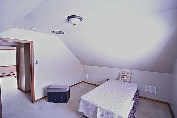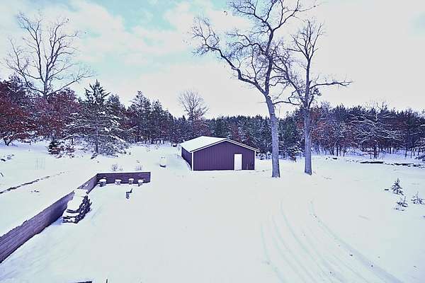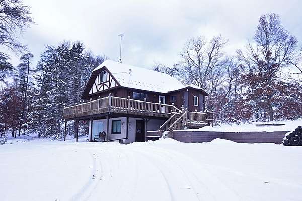 Located at the end of a quiet dead-end street, this 10-acre parcel adjoins 100's of acres of State Land with direct access to hunting, snowmobiling, and ATV trails. The home features 3 bedrooms and 1 bath. Kitchen with ample cupboards and wrap-around counter opens to dining/living area with sliders to a wrap-around deck. One bedroom on the main floor, two upstairs. Heating upgraded from electric to propane forced air with new tin ductwork. New A/C not installed. Full unfinished walkout basement with outside service door and overhead door. Wood stove in basement (not used). 30'x50' pole barn with workshop area and wood stove. Two box blinds, food plot, and pond to bring in the wildlife.