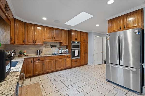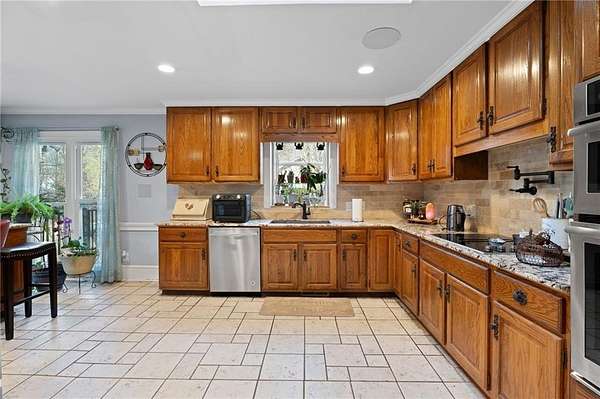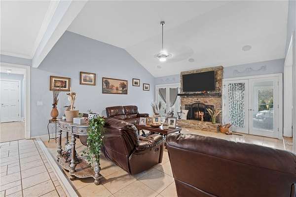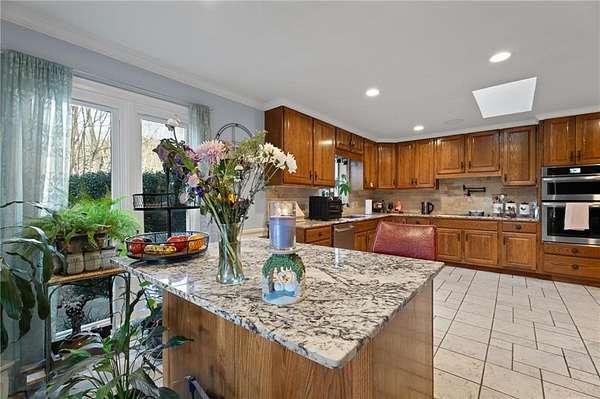 Welcome to this beautifully maintained home nestled on a private lot surrounded by mature tres. This spacious property offers 4 bed/3 full baths, finished basement with its own bedroom, full bath, and full kitchen- perfect for guests, in-laws, or potential rental income. The main level features a warm and inviting living room with vaulted ceilings, a stunning stone fireplace, and abundant natural light. The kitchen and dining areas flow seamlessly, creating an ideal space for everyday living and entertaining. Enjoy peaceful mornings and relaxing evenings in the sunroom or the enclosed porch overlooking the private backyard, Step outside to a thoughtfully designed patio featuring a custom-built grill and a wood-burning oven- perfect for outdoor cooking and entertaining year-round. This home offers plenty of space fro multi-generational living or flexible use. The expansive driveway and quit setting provide both convenience and privacy. Don't miss this unique opportunity to own a home that combines charm, space, and functionality in a tranquil setting!