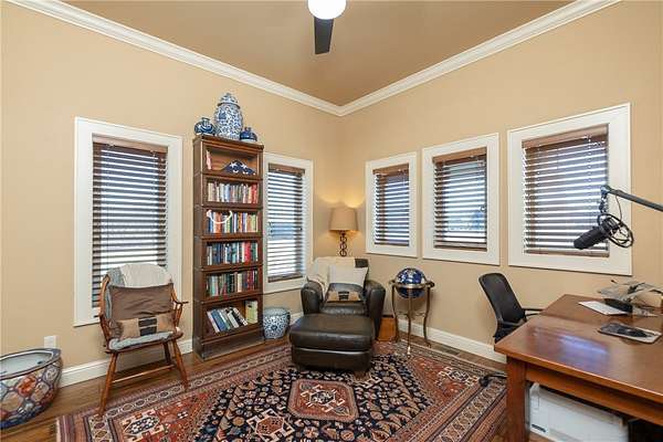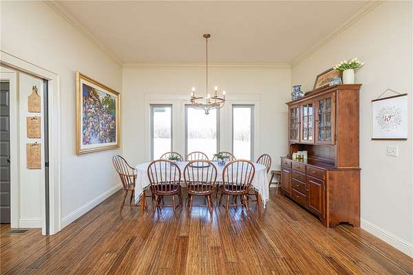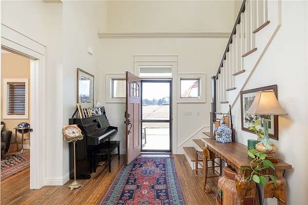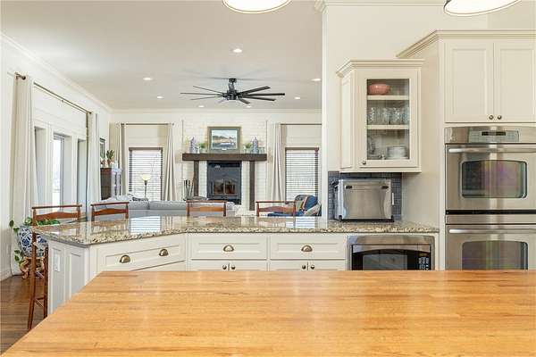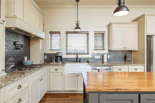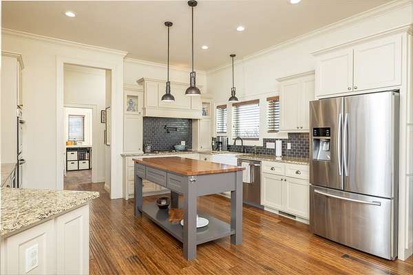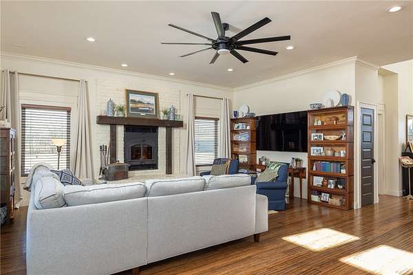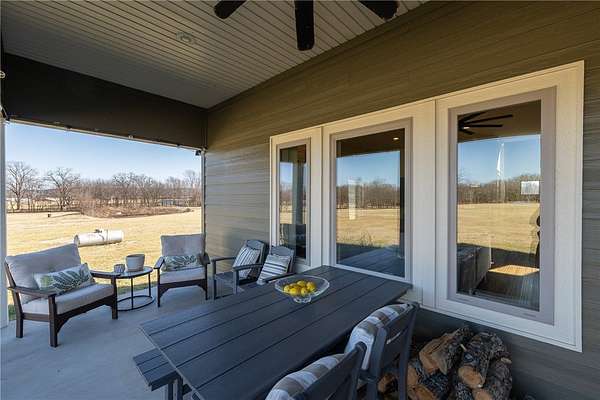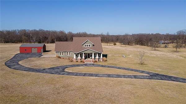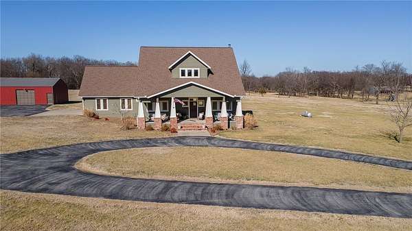 Stunning custom-built Craftsman on 5 acres offering character, comfort & thoughtful updates throughout. The inviting covered porch opens to a light-filled, open floor plan with hardwood floors, a warm wood-burning fireplace & a dedicated office ideal for working from home. The kitchen features granite countertops, stainless steel appliances, butcher block island, farmhouse sink, gas cooktop with pot filler, double ovens & built-in microwave, all flowing seamlessly into the dining area. The primary suite offers vaulted ceilings & a spa-inspired bath with brick flooring, soaking tub, oversized walk-in shower & double vanity. Since 2021, sellers have completed extensive upgrades including full interior repainting (including cabinetry), high-efficiency can lighting, select window replacements, waterproofing improvements with new sump pump & backyard leveling for improved usability. A 1,200+ sq ft shop provides incredible space for hobbies, storage, equipment or workshop needs, all set against peaceful country views.