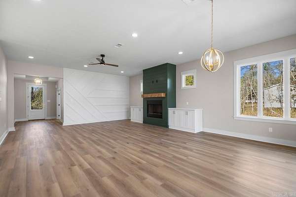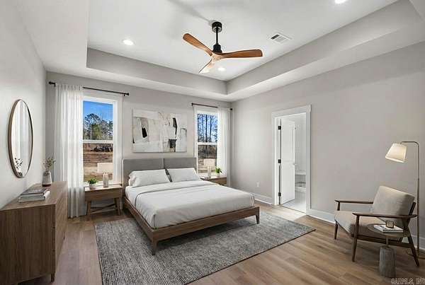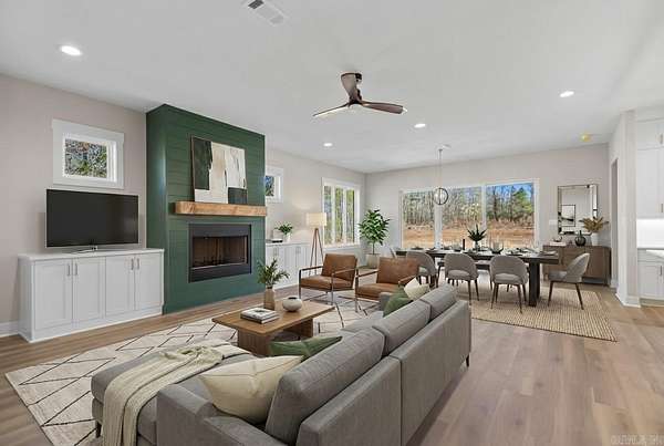 If you've been dreaming of having some space while being close to town, this one checks all the boxes. Sitting on just under 4 private acres in the Bryant School District, this new construction home blends classic charm with a fresh style you'll love. Inside, the open layout feels bright and welcoming with its green accents, gold fixtures, custom cabinetry, gorgeous countertops, and walk-in pantry. The living room centers around a cozy wood-burning fireplace, and a spacious laundry room making everyday life a little easier. You'll find three roomy bedrooms plus a front office with a full closet--so it can easily double as a fourth bedroom if you need it. The primary suite is comfortable and relaxing, and there's plenty of storage throughout. Step outside to a covered patio overlooking your very own private oasis. It's peaceful, quiet, and the perfect blend of "country feel" while still being just minutes from town. This one is a must-see! See agent remarks.