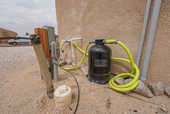 This premium corner lot in beautiful El Rancho Encantado is ready for YOU! Thoughtful planning has gone into the many upgrades recently added to the freshly painted structure on this property. After a full day of "playing" in the desert, you can freshen-up in the 3/4 bathroom with a sink, commode, and shower. Other conveniences include newly installed upper and lower cabinets with countertop, fridge, washer/dryer, microwave, toaster oven, and new utility sink. Other great features include an energy-efficient tankless water heater and (owned) water softener. Termite control recently applied in December '24 by Ram Pest with a 3-year warranty. Invite friends or family to come and enjoy desert living, as there are two 50-amp RV hook-ups with water and sewer. Enter and exit the largest of RVs with ease through the two automatic wrought iron gates. Two mature Mexican Fan Palms stay healthy with the upgraded irrigation system. Plenty of space to add your own landscaping touches. An inflatable hot tub can also be included in the sale. Come and stay awhile where the neighbors are friendly and the views are breathtaking! Convenience stores nearby with just about everything, including gas and propane. Like to be active? Hit the nearby golf courses, or take your pick of the many hiking trails available, or hop on your ATV and ride into the sunset! Bring your RVs, hook up and enjoy peaceful desert living!