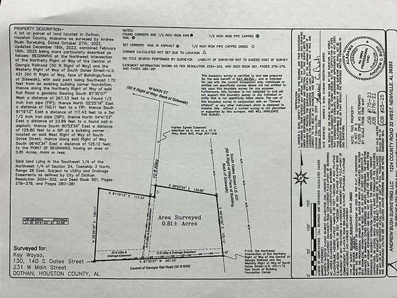 Est $10,660/moThe Hump. A Rare Development Opportunity in Historic Downtown Dothan. This Commercial .81+-ac has many Options and Potential. One Block from Houston Cty Court House, The Forum, BasketCase, Wood Fire Grill and New City of Dothan City Hall. Highly Visible and High Traffic Count. Shovel Ready, Cleared, and Ready to Build. All Utilities at Road. 125' of road frontage on South Oates and access from West Main and South Lena St. Current Survey, Phase 1 Environmental Study, Clear Title, and Future Plans on file. Another Open, Cleared 1.38+-ac available South of Hump, corner of South Oates/ Crawford.