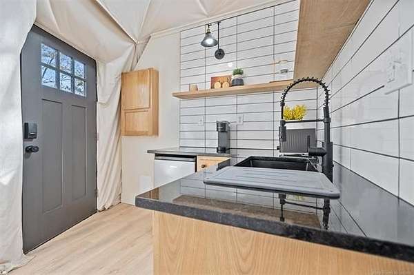 The fully furnished geodome averages approximately $1,800 per month on Airbnb and offers an established short-term rental history for any buyer seeking immediate income. The 30x40 shop includes living quarters and is equipped with septic and plumbing, making it ideal for guest space, a workshop, or on-site accommodations during future expansion.
