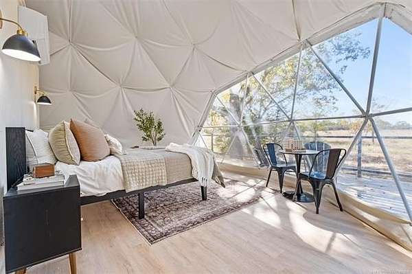 Income-Producing 19+/- Acres Near Bartlesville Rare opportunity to own 19+/- usable acres featuring two ponds, scattered pecan trees, and open land with multiple potential build sites. Located approximately 5 minutes from downtown Bartlesville, 5 minutes from Osage Hills State Park, and 20 minutes from Pawhuska, this property offers privacy with convenient access to town and recreation. The fully furnished geodome has an established short-term rental history and averages approximately $1,800 per month on Airbnb, providing immediate income potential. A 30*40 shop with living quarters includes septic and plumbing, offering flexibility for guest space, workshop use, hobby space, or on-site accommodations during future expansion. The land is open and accessible, suitable for recreation, livestock, additional development, or continued rental use. With infrastructure in place and a recent price reduction, this property presents a versatile opportunity for investment, personal use, or long-term growth. Realtor owned.
