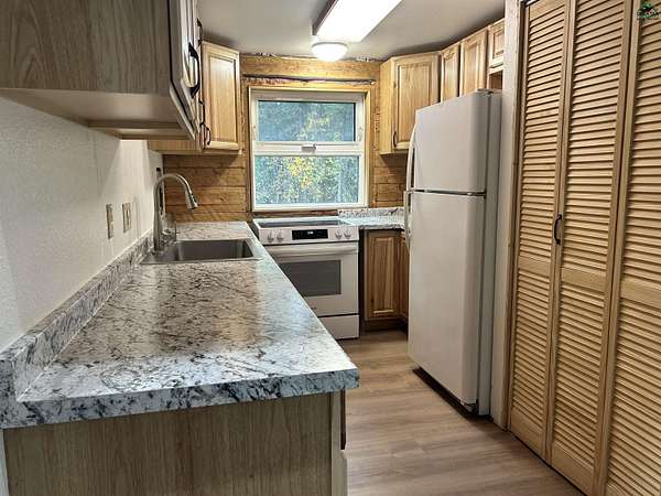 This log home offers warmth and character and many recent upgrades throughout including kitchen and bathroom. The 1.36 acre lot, open and wooded, provides a large yard, plenty of outdoor space, and two sheds. Located just minutes from UAF, it combines privacy with easy access to schools, shopping, and town.