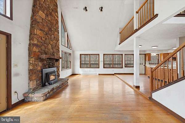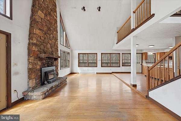 First time on the market, this private wooded retreat offers the perfect blend of seclusion and accessibility, with convenient access to Back Mountain Road. Set on approximately 16 + acres of mature hardwoods, the property features striking natural rock outcroppings and a peaceful mountain setting-ideal for those seeking a serene escape. With no restrictions, the possibilities here are wide open. The home offers over 2,100 square feet of finished living space, plus an additional 1,300 square feet in the unfinished basement, providing excellent potential for expansion. With 3 bedrooms and 2 bathrooms, the home is ready for your personal updates and vision. Its solid construction and ""good bones""� make it an ideal candidate for renovation. Inside, the main level features beautiful hardwood floors and abundant natural light throughout. The centerpiece of the home is the impressive family room, highlighted by a floor-to-ceiling stone fireplace crafted from stone sourced directly from the property. A wood-burning insert adds warmth and charm to the family room. The large unfinished basement includes windows and a wood stove, offering even more opportunities to create additional living space. Step outside to enjoy the expansive wraparound deck-perfect for taking in the surrounding natural beauty. This is a rare opportunity to own a mountain property with character, acreage, and incredible potential. Bring your vision and restore this home to its full glory.