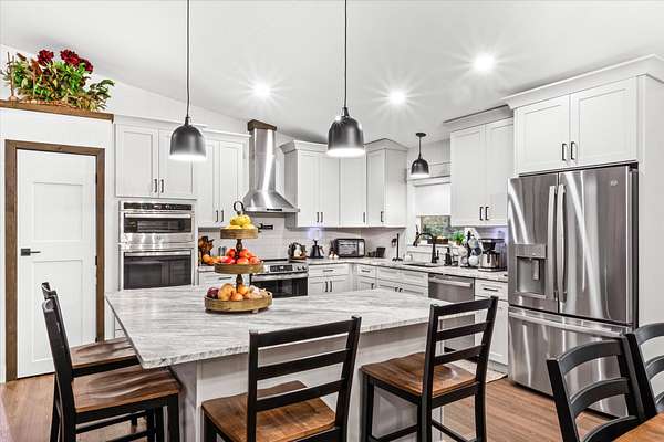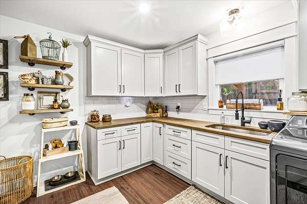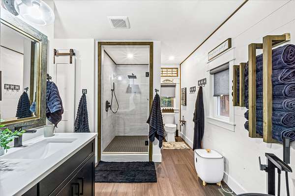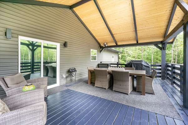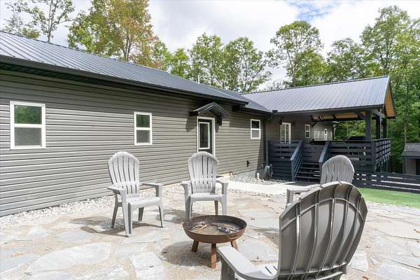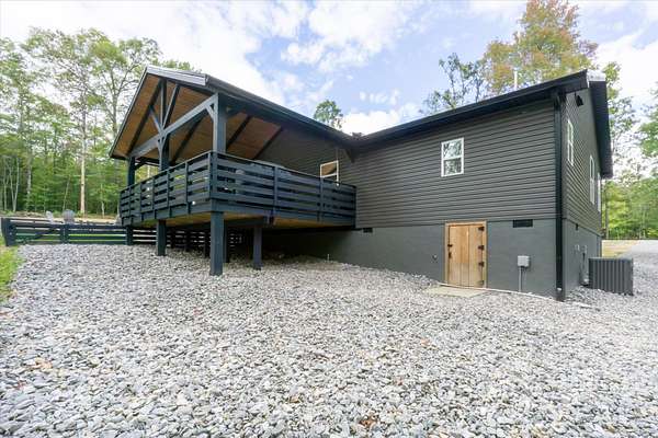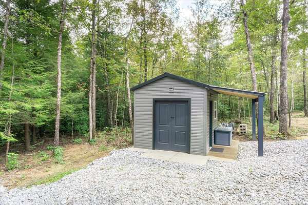 Discover this brand-new 2 bedroom, 2 bath home nestled on 5 unrestricted wooded acres with beautiful mountain views along your drive to the property. Designed for comfort and style, this property offers covered front and back porches, a 10x12 utility shed, and a spacious 28x32 two-stall garage complete with custom cabinets, hardwood countertops, and a wash basin. Inside, the open floor plan features Pergo wood floors throughout, granite countertops, and upgraded GE appliances, including a convenient kitchen pot filler. The chef's kitchen shines with 42-inch high cabinets with molding and extra-deep 14-inch uppers. A spacious mudroom with laundry and sink adds everyday convenience, while custom window treatments in every room provide a polished finish. Cozy up to the electric fireplaces in both the living room and master suite. The primary retreat boasts two walk-in closets, a deep soaking tub, and a tiled walk-in shower. Shiplap accent walls in the bedrooms and bathrooms add charm and character. Extras include whole-house surge protection, a crawl space dehumidifier, and thoughtful upgrades throughout. A perfect blend of privacy, modern convenience, and mountain living awaits!