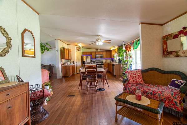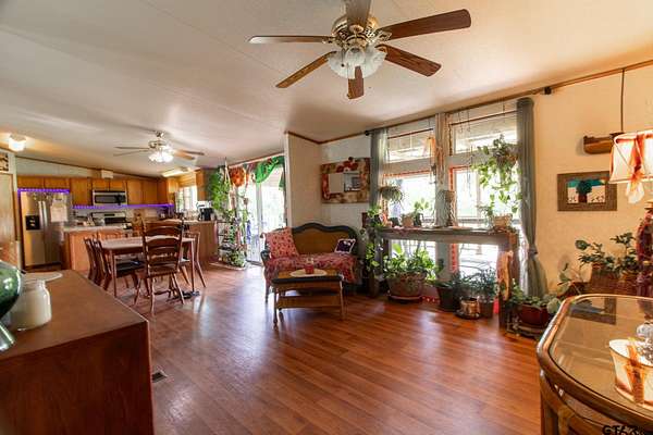 Sellers are ready to move, bring us an offer! With a reasonable offer, the sellers will provide $10,000 in buyer concessions. Imagine the possibilities - a venue, generational living, or a small RV park!(Sellers used RV hook ups for gathering of a RV Club, buyer would have to verify all information for a RV Park) With 10 RV hookups, each with its own electrical meters, the options are endless. The barn features a dance floor, stage, and dry bar - perfect for parties. It also includes a workshop with a half bath and a separate living quarter with 1 bed, 1 bath, and a living room. There are two ponds, one a spring-fed, stocked with bass, crappie, and catfish. The main house is a 3-bed, 2-bath home with two fireplaces and HVAC upgraded in 2023. A third house could be moved and replaced with a tiny home, offering a view of the large pond - perfect for an Airbnb. The property is fenced and cross-fenced, perfect for livestock. You have to see it to believe it - peaceful with so many opportunities. Call for a showing!