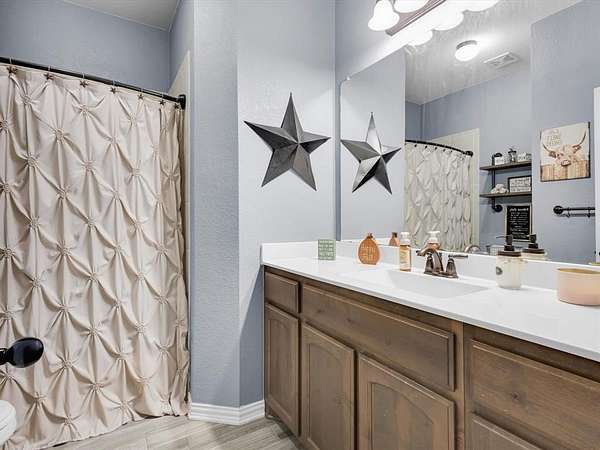 Nestled on over 3 acres of fully fenced land, this meticulously maintained Decatur ranchette offers the perfect blend of modern comfort and country charm! The private, gated entrance leads you to a beautifully landscaped property featuring two lush pastures, ideal for horses and livestock, or simply enjoying the expansive views. A brand-new $11k workshop with a roll-up door provides ample space for projects, storage, or hobbies - 12' x 20' with 6' covered patio. The back pasture includes a convenient loafing shed, ensuring your animals have a comfortable shelter. Evenings can be spent around the firepit, soaking in the tranquility of the surroundings. The screened-in porch offers a serene spot to enjoy the beautiful Texas sunrises and sunsets. Inside, the home boasts a cozy wood-burning fireplace in the living area. The owners suite is a true retreat, featuring dual vanities, a separate shower, and a soaking tub, perfect for unwinding after a long day. An office upon entry provides a quiet space for work or study. For those warm Texas days, the above-ground pool offers a refreshing escape, making this property a perfect blend of relaxation and functionality. Whether you're looking to relax in your private oasis or entertain guests, this property offers the space and amenities to make every day feel like a getaway!