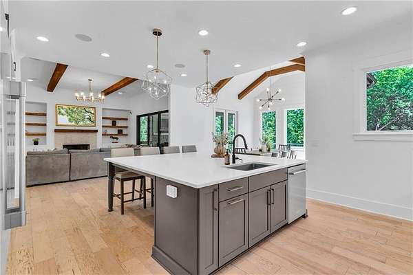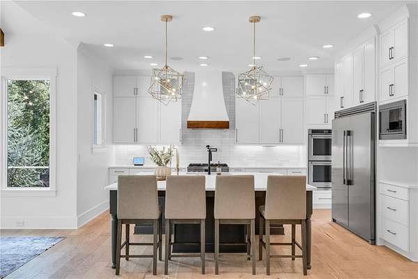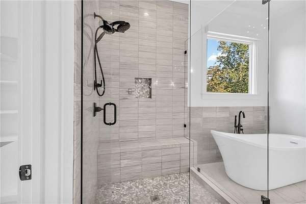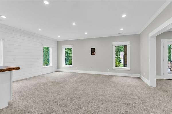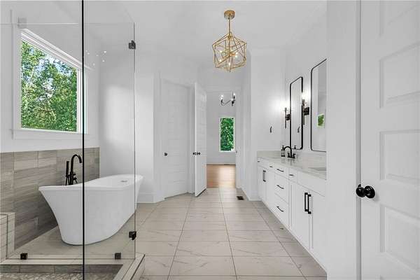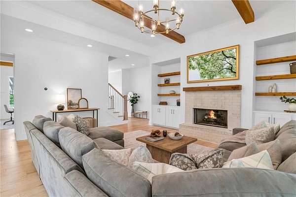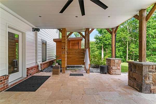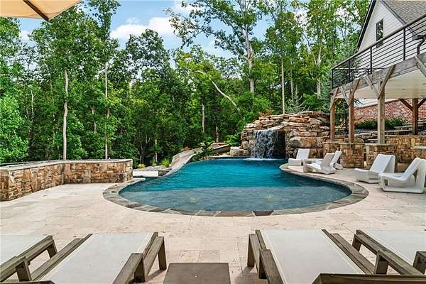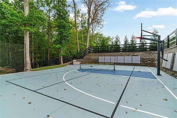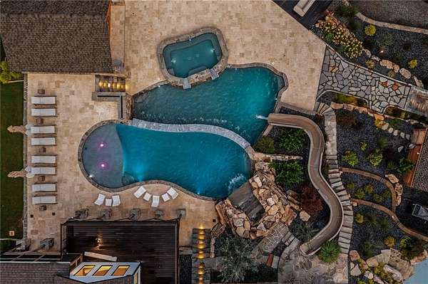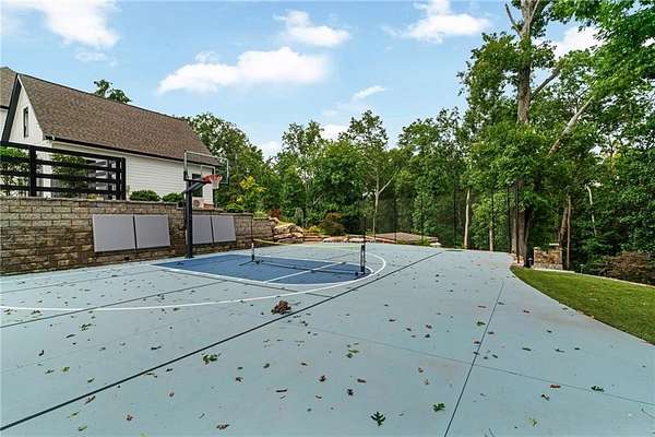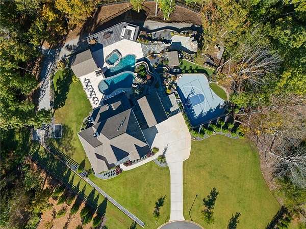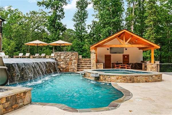 Once-in-a-Lifetime Luxury Estate with Resort-Style Backyard on 2.5 Acres - UNLIKE ANYTHING ELSE ON THE MARKET! This extraordinary estate offers a rare opportunity to own a property that blends the ultimate in luxury living with resort-style amenities. Situated on 2.5+/- acres of lush landscaped grounds in a prime school district, this home is designed for entertaining, relaxation, and everyday comfort at the highest level. Inside, you'll find gorgeous modern finishes with cedar beams throughout the main level, an open floor plan with a large family room that includes built-ins, cozy stone fireplace and sliding doors opening the indoors to the outdoors. A massive gourmet kitchen featuring an oversized island with seating for up to 10, quartz countertops, double ovens, oversized refrigerator, and a vented range with hood. A vaulted keeping room/ breakfast area with shiplap and custom lighting adds to the charm of this spectacular home! This luxury kitchen also offers a custom walk-in pantry with a grocery door makes everyday living effortless. The main-level primary suite is a private retreat with soaring ceilings and a spa-like bath including a soaking tub, oversized shower, and double vanity. Owner suite closet includes custom built-ins, island with drawers, makeup vanity/desk and FULL laundry with sink! Upstairs, four spacious secondary bedrooms each offer their own private en suite bath and walk-in closets. A second fantastic laundry upstairs with cabinets and sink. The finished terrace level includes a sixth bedroom, full bath, a state-of-the-art media room with seating for 10 and an incredible sound system, a fitness room, and a rec room. Terrace level also offers a third laundry making laundry a breeze on any floor! A whole-home speaker system carries throughout the interior and exterior, creating the perfect setting for entertainment. The backyard is a true PARADISE with diving ledges, resort-style slides, waterfalls, grottoes, tanning ledges, and a massive hot tub, along with pickleball and basketball courts, a putting green, and an in-ground trampoline. Outdoor living continues with a full kitchen, outdoor bathroom, sauna, private outdoor shower and spectacular outdoor fireplace tucked in the trees for majestic evenings! Covered and screened deck with fireplace is the perfect spot for morning coffee! Custom lighting enhances both the home and backyard, creating a stunning evening ambiance, while a full irrigation system keeps the grounds lush and a full house generator provides peace of mind. A rocking chair front porch adds classic Southern charm, while the attached two-car garage and detached two-car garage provide space for four vehicles in total. Above the detached garage, a private office / bonus space is ideal for a home office, studio, or man cave. The property also features a private hiking trail that leads directly to Canton Creek and waterfall. This one-of-a-kind estate combines breathtaking design, unmatched amenities, and an outdoor resort experience unlike anything else on the market.
