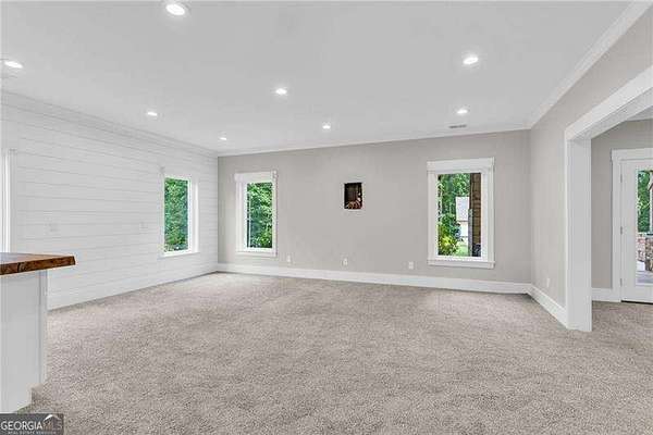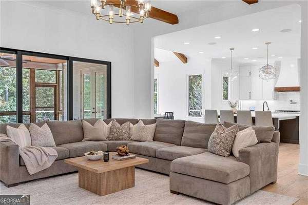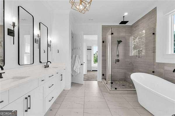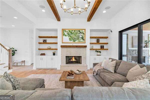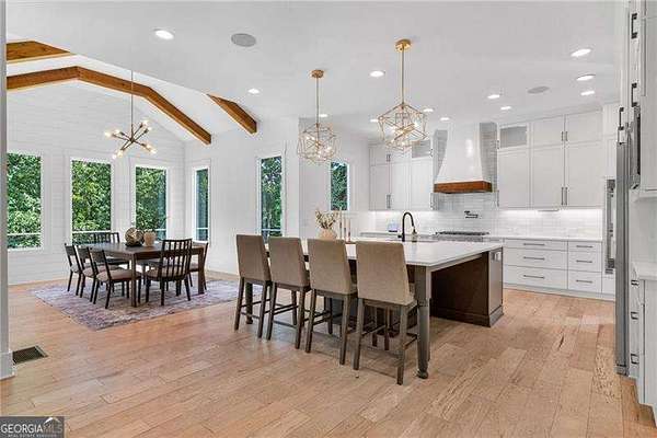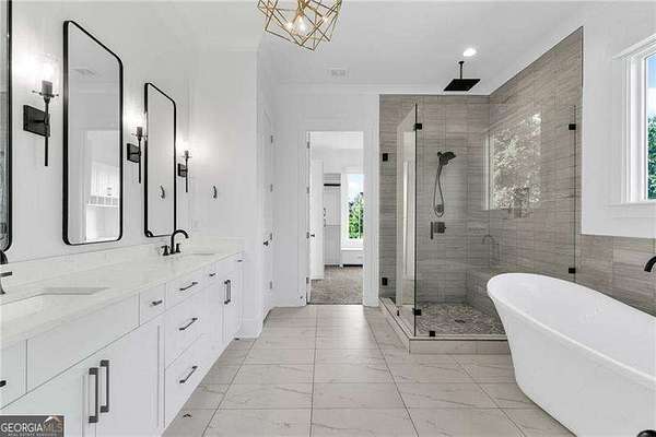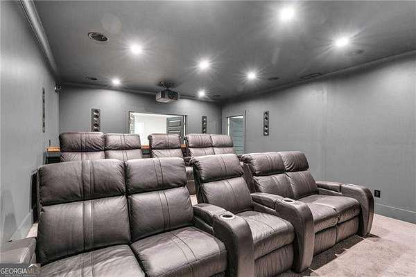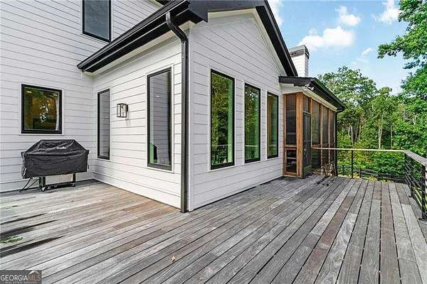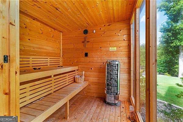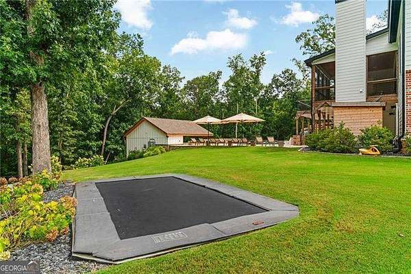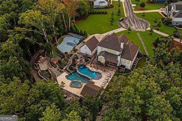 Once-in-a-Lifetime Luxury Estate with Resort-Style Backyard on 2.5 Acres - UNLIKE ANYTHING ELSE ON THE MARKET! This extraordinary estate offers a rare opportunity to own a property that blends the ultimate in luxury living with resort-style amenities. Situated on 2.5+/- acres of lush landscaped grounds in a prime school district, this home is designed for entertaining, relaxation, and everyday comfort at the highest level. Inside, you'll find gorgeous modern finishes with cedar beams throughout the main level, an open floor plan with a large family room that includes built-ins, cozy stone fireplace and sliding doors opening the indoors to the outdoors. A massive gourmet kitchen featuring an oversized island with seating for up to 10, quartz countertops, double ovens, oversized refrigerator, and a vented range with hood. A vaulted keeping room/ breakfast area with shiplap and custom lighting adds to the charm of this spectacular home! This luxury kitchen also offers a custom walk-in pantry with a grocery door makes everyday living effortless. The main-level primary suite is a private retreat with soaring ceilings and a spa-like bath including a soaking tub, oversized shower, and double vanity. Owner suite closet includes custom built-ins, island with drawers, makeup vanity/desk and FULL laundry with sink! Upstairs, four spacious secondary bedrooms each offer their own private en suite bath and walk-in closets. A second fantastic laundry upstairs with cabinets and sink. The finished terrace level includes a sixth bedroom, full bath, a state-of-the-art media room with seating for 10 and an incredible sound system, a fitness room, and a rec room. Terrace level also offers a third laundry making laundry a breeze on any floor! A whole-home speaker system carries throughout the interior and exterior, creating the perfect setting for entertainment. The backyard is a true PARADISE with diving ledges, resort-style slides, waterfalls, grottoes, tanning ledges, and a massive hot tub, along with pickleball and basketball courts, a putting green, and an in-ground trampoline. Outdoor living continues with a full kitchen, outdoor bathroom, sauna, private outdoor shower and spectacular outdoor fireplace tucked in the trees for majestic evenings! Covered and screened deck with fireplace is the perfect spot for morning coffee! Custom lighting enhances both the home and backyard, creating a stunning evening ambiance, while a full irrigation system keeps the grounds lush and a full house generator provides peace of mind. A rocking chair front porch adds classic Southern charm, while the attached two-car garage and detached two-car garage provide space for four vehicles in total. Above the detached garage, a private office / bonus space is ideal for a home office, studio, or man cave. The property also features a private hiking trail that leads directly to Canton Creek and waterfall. This one-of-a-kind estate combines breathtaking design, unmatched amenities, and an outdoor resort experience unlike anything else on the market.