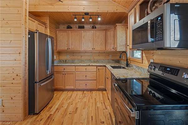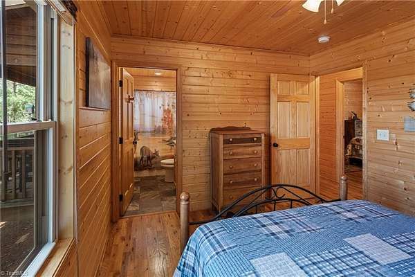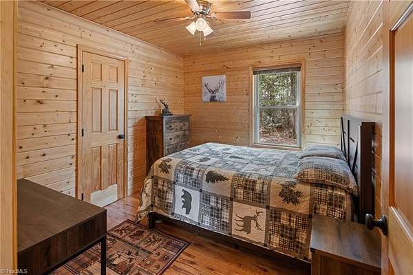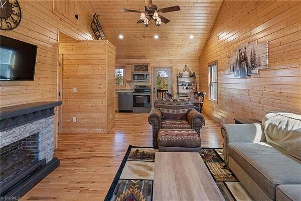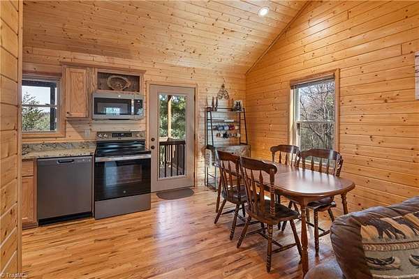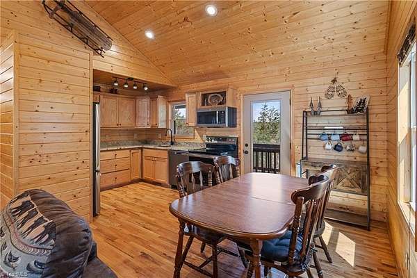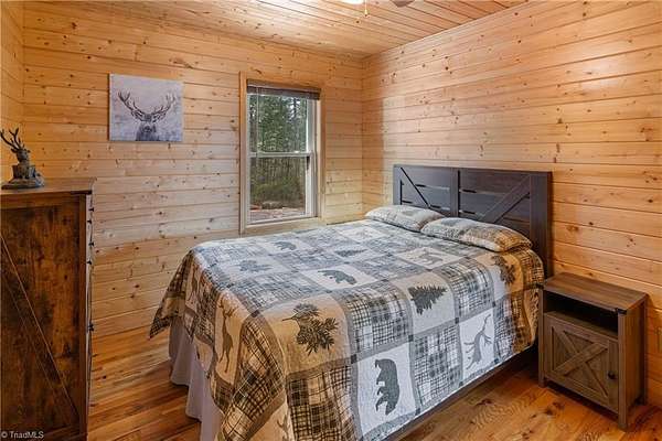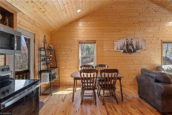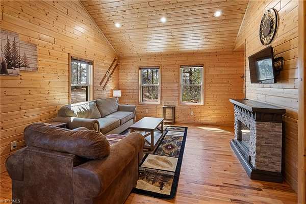 CABIN ON 5+ ACRES - VIEWS – MAIN LEVEL LIVING - EASY ACCESS – FLAT PARKING - FULLY FURNISHED 3 bedroom, 2 bath cabin is ready to enjoy! Located in 3,400 acre Buck Mountain...ONLY GATED ATV COMMUNITY in Wilkes County. Cabin features hardwood floors & cathedral ceilings. $17K in recent upgrades: New kitchen appliances (2025), Granite Kitchen Countertops, Custom Cabinets added, Tree Work to open view & Water Filtration System. Grill out on covered back porch & take in the views. Circular driveway & flat parking provide easy access. 2 storage sheds. Owner added 1.33 acres by purchasing adjoining lot to bring total acreage to 5.49. Great location in Buck Mtn near Outdoor Activity Center, Stocked Fishing Pond, Trails & Community Center. 30 min from Boone, West Jefferson & Wilkesboro. AMENITIES: ATV & Hiking Trails, Parks, Pond, Waterfalls, Pavilions, Community Ctr, Helipad & Outdoor Activity Ctr. TRAVEL TIMES: Winston-1HR, Charlotte-1HR,40MIN, Raleigh-3HRS. Long & short-term rentals allowed.