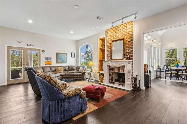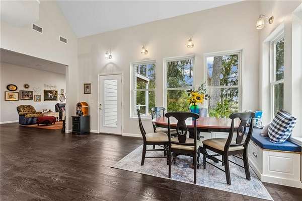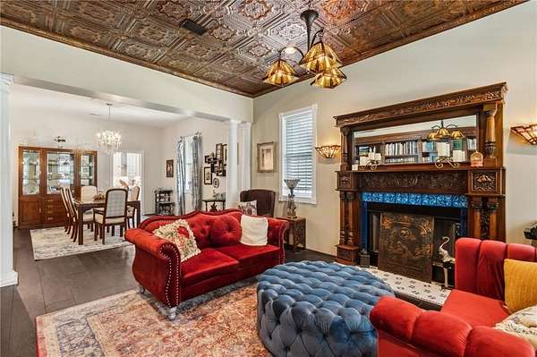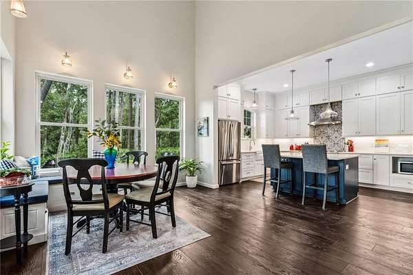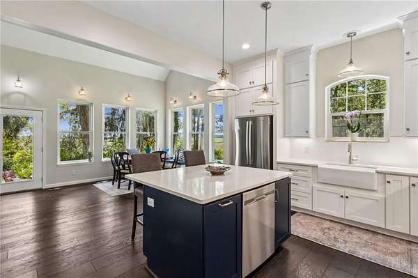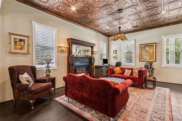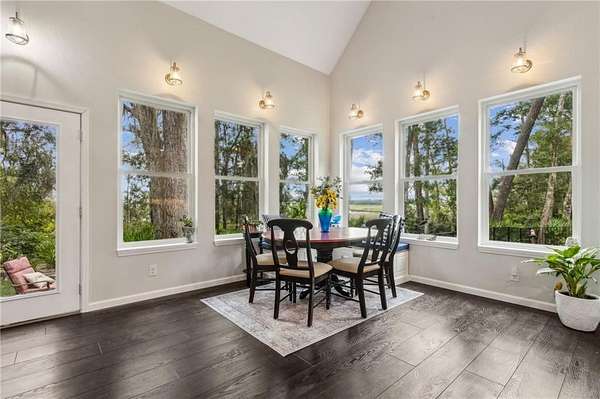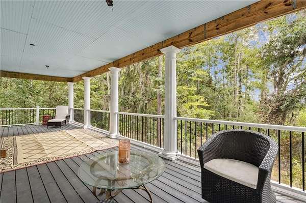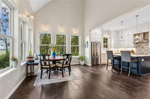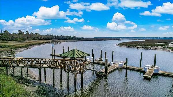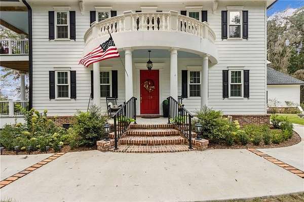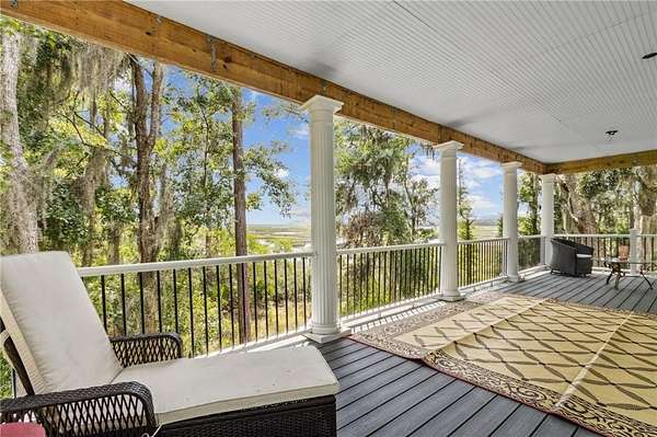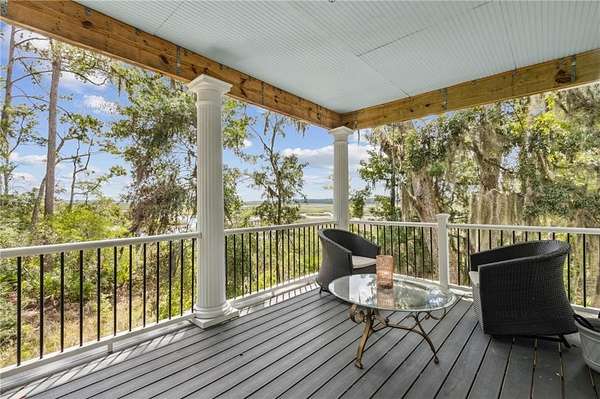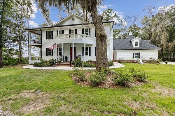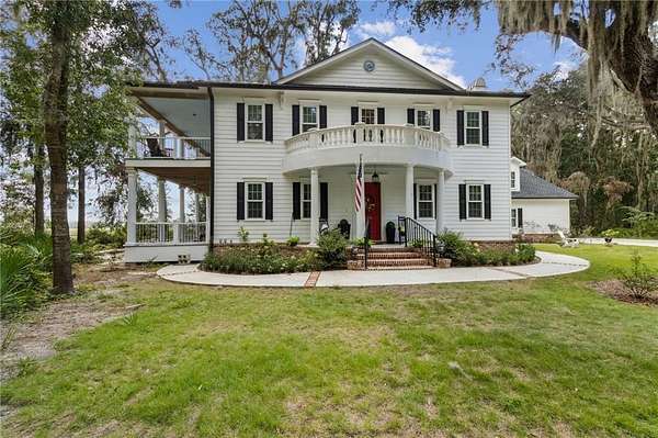 Welcome to this exceptional 2022-built home in the desirable gated community of Misty Harbor in Woodbine, GA. A true masterpiece, this residence is a replica (with a little expansion of the square footage) of the iconic Josiah Smith House in Charleston, SC, offering the perfect blend of historic charm and modern elegance. With extravagant finishing touches throughout, this home boasts unique features that set it apart. Upon entering, you're greeted by a grand 19-foot ceiling in the entranceway, creating a dramatic first impression. The dining room is a showstopper, complete with built-in seating and oversized windows that flood the space with natural light and provide picturesque views of the surrounding landscape. A true highlight of the home is the beautifully appointed library with a stunning tin ceiling-perfect for quiet reading or showcasing your favorite collection. The loft area offers added versatility, featuring Murphy doors that lead to an attic for additional storage space. The spacious primary suite opens onto a private balcony, where you can relax and take in the serene marsh views-ideal for morning coffee or evening sunsets. Two wood-burning fireplaces, never before used, add a touch of historic warmth and charm to the living spaces. The home features high-end LVP flooring throughout, complemented by regal carpeted stairs for added comfort. Whether you're entertaining guests or enjoying peaceful solitude, this home provides a versatile and accommodating space for everyone.