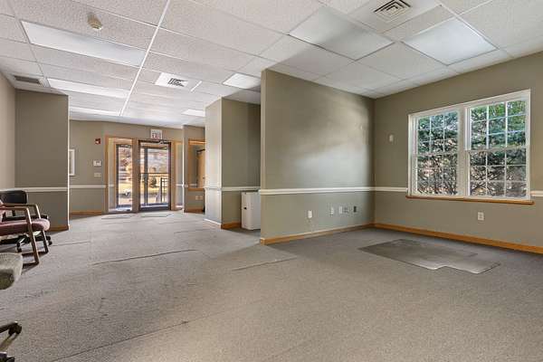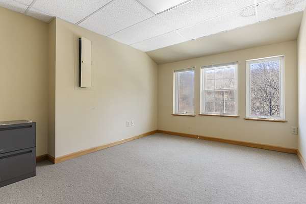 Est $11,354/moOffice building located on Route 202 in New Milford. 16,520 SF building. 12,820 SF of office space plus 3,700 SF storage space. Building has many private offices and meeting areas. A cafe with a full kitchen, central air and private parking lot. Currently laid out for professional users, but with additional parking medical is possible.