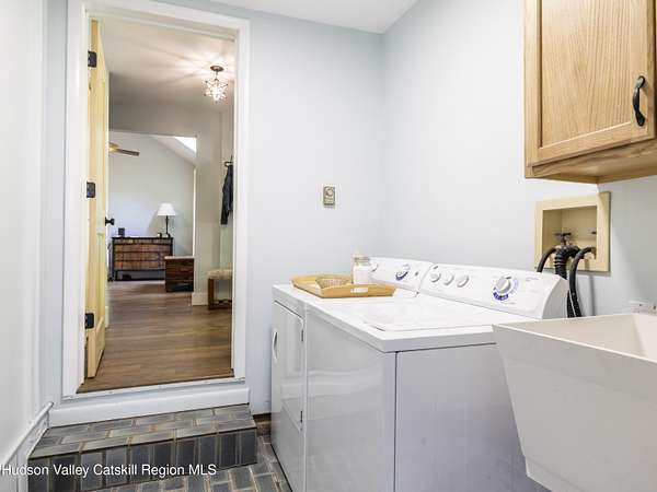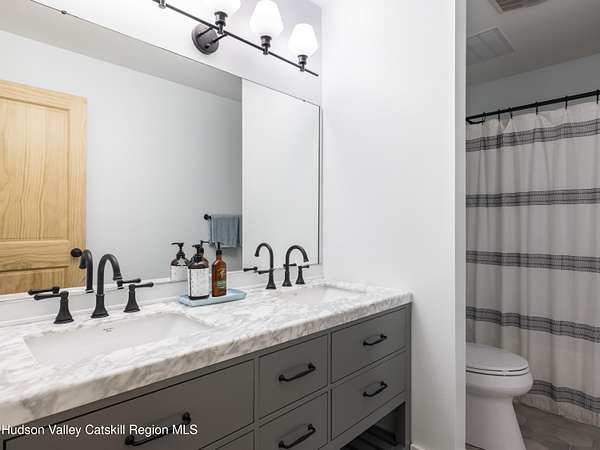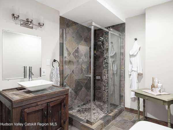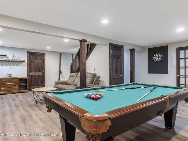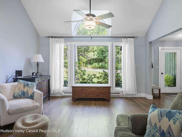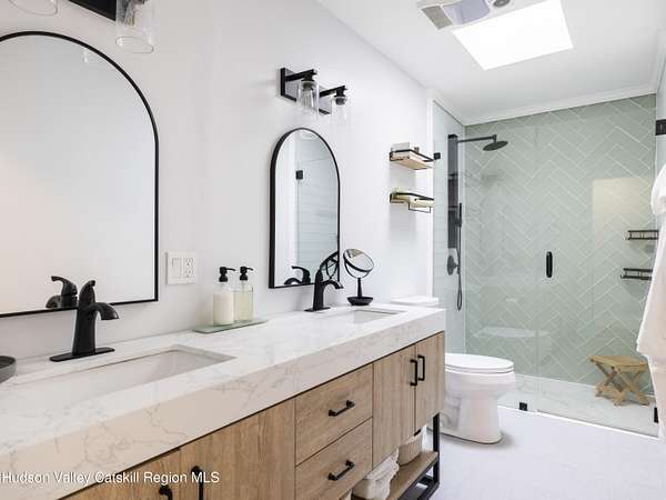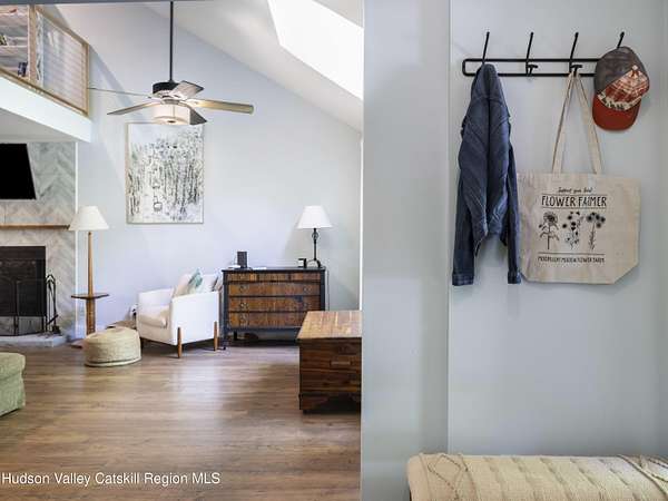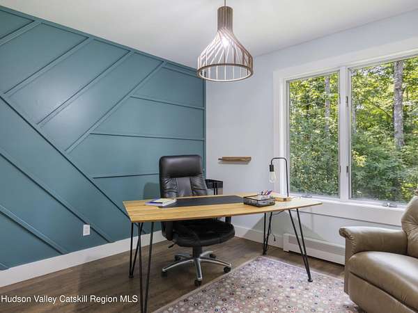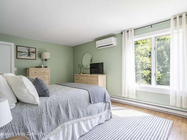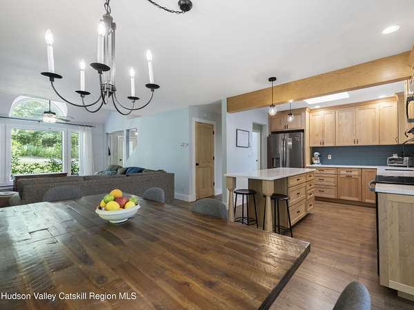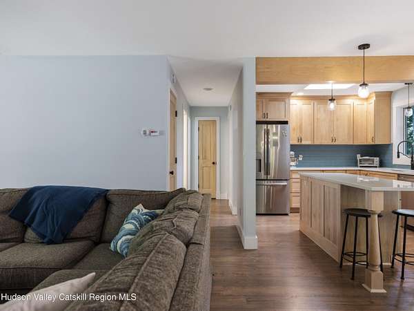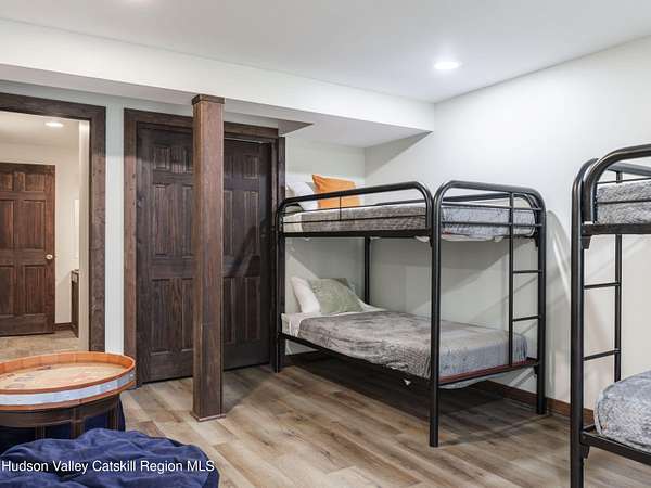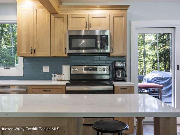 Cozy Up in This Fully Renovated Mountain Home- Just in Time for Fall Colors and Winter Skiing! Welcome to your serene mountain retreat-fully renovated, turnkey, and ready for you to enjoy this fall's vibrant foliage and hit the slopes at Windham or Hunter Mountain this winter. Whether you're looking for a peaceful full-time residence, a weekend escape, or a strong-performing short-term rental, this modern Catskills home checks every box. Tucked away on 5 private, wooded acres that back up to DEP-protected land, this spacious three-level home blends clean, contemporary style with the comforts of mountain living. Step inside to calming interior tones-soft grays and crisp whites-enhanced by new, modern light fixtures throughout. The warm yet modern palette sets a peaceful tone, while one of the bedroom walls features a fun and tasteful accent color that adds personality without overwhelming the space. The open-concept main floor welcomes you with vaulted ceilings, gleaming wood floors, and a dramatic wood-burning fireplace framed in eye-catching herringbone tile. The layout flows effortlessly into a chef's kitchen outfitted with white quartz countertops, stainless steel, GE appliances, custom maple cabinetry, and an island with additional storage space below. Just off the dining area, sliding doors open to a freshly painted deck-ideal for grilling, entertaining, or sipping your morning coffee while soaking in the surrounding nature. Also on the main level: two comfortable bedrooms and a fully updated bathroom with a brand-new double vanity. Upstairs, a private primary suite awaits with a renovated en-suite bath featuring a tiled walk-in shower, and rustic barn door detail. Adjacent is a spacious loft overlooking the living area below, complete with built-in cabinetry, a custom desk, and sleek cable railings-a perfect space for a home office, reading nook, or additional sleeping area. The fully finished walk-out basement adds even more flexibility, offering a large family/game room, a bunk room, and a brand-new third full bathroom. The pool table stays for instant fun, and most furnishings are available, making this a truly move-in-ready home with excellent rental potential. Split AC units and ceiling fans keep things cool in the summer, while the fireplace adds cozy ambiance during the winter months. A two-car garage provides plenty of storage for all your gear-whether it's skis, bikes, or kayaks. Outside, enjoy a dedicated fire pit area and a small garden space-the lush lawn provides the perfect space for stargazing, s'mores, or morning meditation. With a newer roof (approx. 7 years old) and every corner thoughtfully updated, this home offers peace of mind along with its charm. Located just minutes from Windham and Hunter Mountains, public golf courses, parks, hiking trails, and Windham's shops and dining, it's the ideal base for year-round adventure. This Catskills gem is more than a home, it's your next chapter! Call/Text today to schedule an in-person viewing!