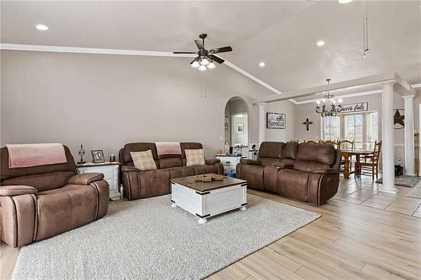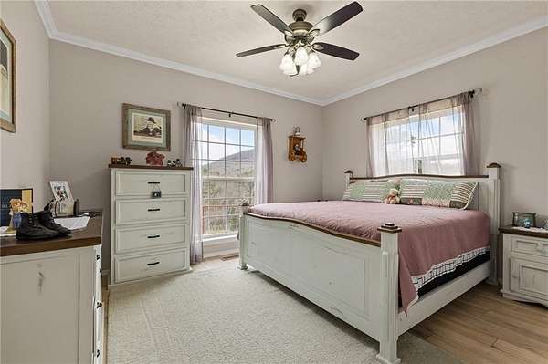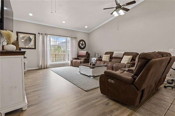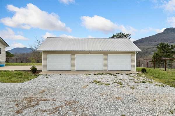 Pulling up to the end of the road, you feel it right away—this kind of peace, privacy and views is hard to find! No close neighbors, just 9 m/l acres of fenced pasture. Whether it’s horses, couple cows, or simply room to breathe, you’ve got options (more land available). The BIG views of Red Rock Bluff and the sunsets here make time stand still. The home has been incredibly well kept, featuring a split floor plan, vaulted ceilings, and no carpet! The oversized primary suite has a jetted tub, while the covered front porch and back deck give you the perfect spots to start and end your day. A circle driveway makes for access easy, and the 1,000 sq ft 3-car garage offers plenty of space for vehicles, toys, or a workshop. HVAC and appliances - all less than 2 years old, plus there is a spring on the property. Just minutes from Carver access on the Buffalo National River and a 5 min. ATV ride to several gravel bars, outdoor adventure is all around. Furnishings are negotiable.