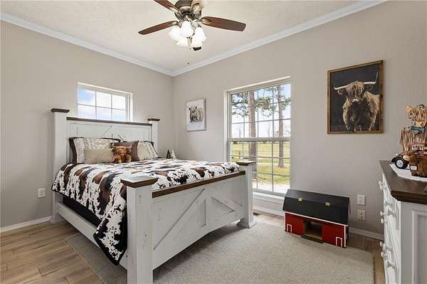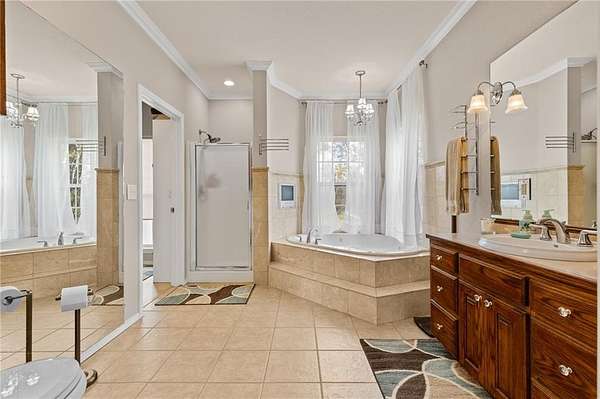 - Blinds, Cathedral Ceiling, Ceiling Fans, Pantry, Split Floor Plan, Walk-In Closets