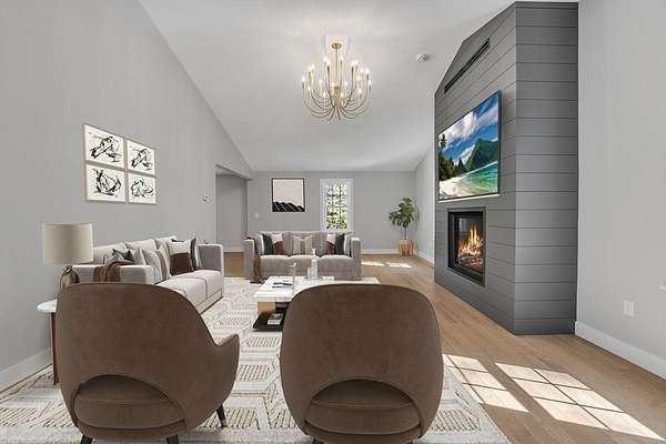 Est $4,259/moThis home combines the privacy of a 2 acre wooded lot and the quality of a home with elegance, quality, design, and energy efficient mechanical systems. Hardwood 3/4" oak tongue and groove flooring are throughout the main level and second floor including the staircase. The GREAT ROOM with a gas fireplace and cathedral ceilings is spacious and can accommodate any size furnishings. An 8' center island with quartz countertop houses multiple cabinets and are a great prep area or a convenient place to gather for a glass of wine. For comfort an ERV exchange air system circulate the air five times per hour, for convenience there is hot and cold water in the garage, and for future rooms in the lower level there is rough plumbing for a full bath .