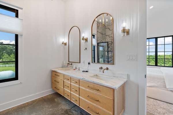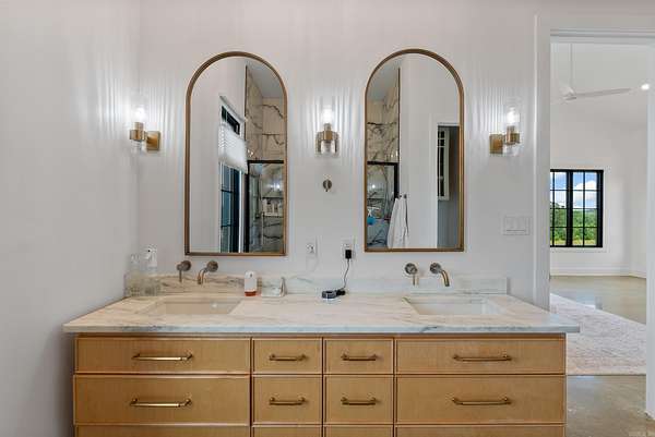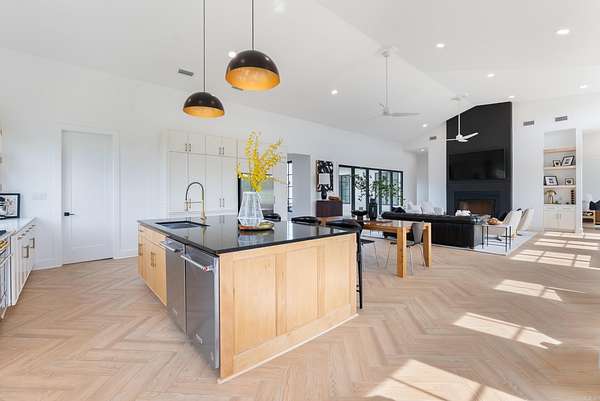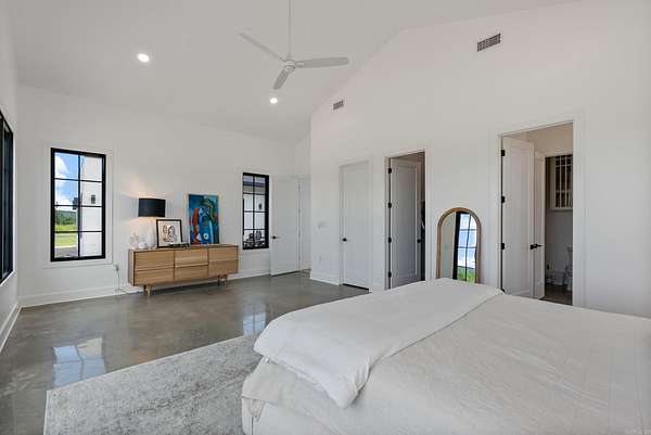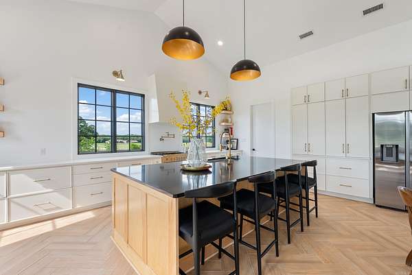 Welcome to your private Spanish modern oasis! Tucked away at the very back of a peaceful, gated neighborhood, this stunning home offers elegance, privacy, and functionality. The design features clean lines, arched accents, and warm textures. Every inch showcases high-end craftsmanship with no expense spared--including premium Pella doors and windows and beautiful tile floors laid in a timeless herringbone pattern. With 4 spacious bedrooms, an office, workout room, and 3.5 bathrooms, there's room to live and entertain in style. Situated on approx. 5.79 acres in a horse-friendly neighborhood where many neighbors have barns and fenced acreage, this property offers incredible potential for your own equestrian setup. The oversized shop adds even more space for tools, toys, or creative projects. This one-of-a-kind home is ready to impress! Square footage is approximate; please measure. Agents see remarks.