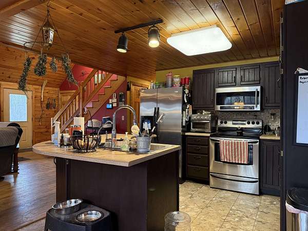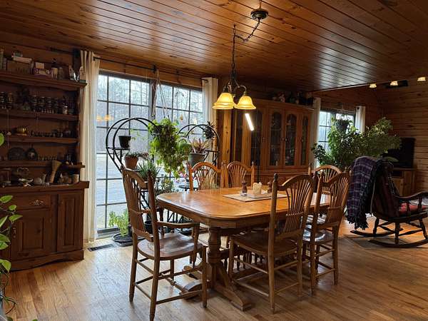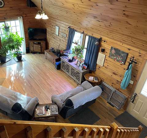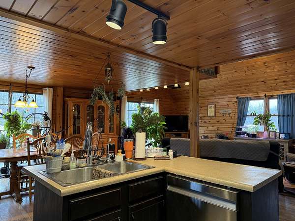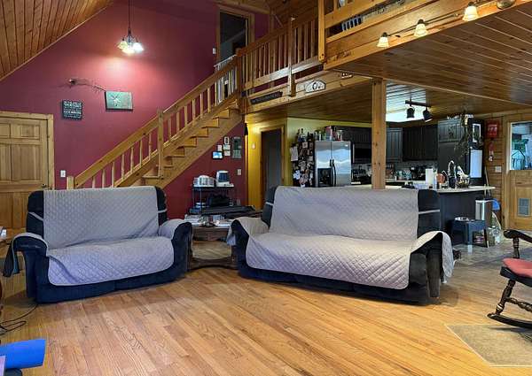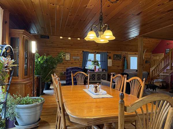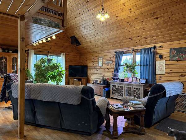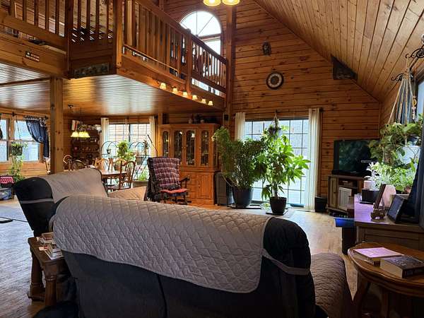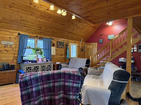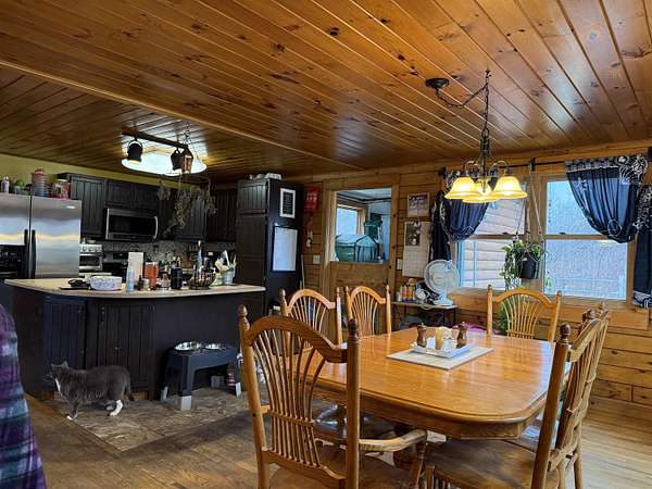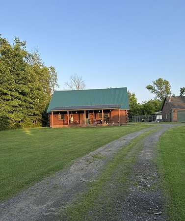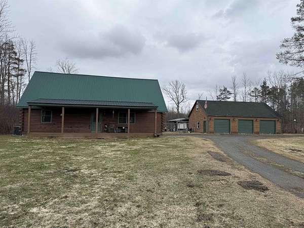 WELCOME TO THIS LOVELY LOG HOME SITUATED ON 21.7 ACRES! This beautifully maintained 3 bedroom, 2 full bathroom log home has an open concept living area, a large loft, an oversized 3 car heated garage with storage space upstairs, a new propane boiler, a new on demand water heater, a generator, a covered front porch, a patio, a fenced in dog area and offers the perfect blend of charm, modern comforts, and privacy. Set well back from the road and framed by mature trees, the home provides a peaceful, secluded setting while still being conveniently located. Inside, you will find a bright, open concept living area filled with natural light. As you enter, the living room welcomes you with a beautiful staircase and a spacious loft overlooking the main level, making it an ideal space for a home office or reading nook near the large window, with a convenient coat closet at the base of the stairs. The kitchen is designed for both everyday living and entertaining, featuring an island and stainless steel appliances including a refrigerator, stove, dishwasher, and microwave that all convey with the home, while the dining area offers large windows perfect for plants and enjoying views of the surrounding property. The main floor includes two bedrooms, a full bathroom, and an oversized laundry closet with cabinetry for additional storage. Upstairs, you will find the expansive loft, the primary bedroom with a walk-in closet, and a spacious full bathroom with a large vanity and ample cabinet space. Outside you will enjoy relaxing on the covered front porch or the back patio and there is plenty of room for get togethers and BBQ's! Additional highlights include an oversized, 3 car garage (that could be heated) with storage space above and a fenced dog kennel area attached to the garage with an interior room that could be heated. Located in Potsdam and close to Canton, Madrid, and Norwood, this exceptional log home offers the best of privacy and convenience and truly feels like an oasis--schedule your showing today!