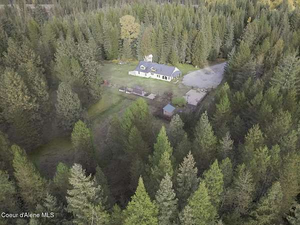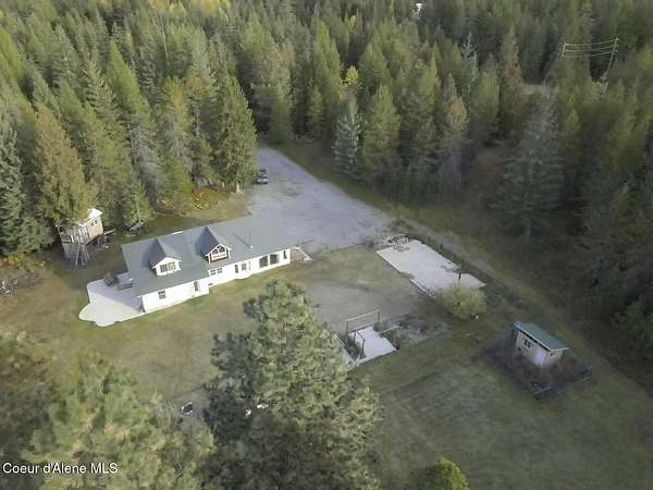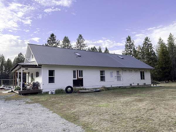Large luxury at a fraction of the price. 3052 sq ft 6 Bed, 4 Bath, 6.4 Acres with no ccrs. Private North Idaho Setting. Bring your tools, vision, and creativity to this unique property that blends historic charm with modern design. Originally built in the 1940s as a sturdy Forest Ranger station, this home has been beautifully expanded and upgraded in 2025 to create a spacious 3,052 sq ft residence with 6 bedrooms, 4 bathrooms, a large living room, and a separate den. The layout offers endless potential-with space for a future sauna, a huge master suite. Many of the building materials are included, making this an excellent opportunity for a contractor or anyone ready to invest some sweat equity and complete the finishing touches. Outside, enjoy the 6.4 private acres with mature trees, pasture, a basketball court, water feature, workshops, treehouse, chicken coop, and firepit-everything you need for a true North Idaho lifestyle. Property includes a private well, power, and plenty of privacy while still being close to amenities. If you've been searching for a one-of-a-kind project with solid bones, modern upgrades, and endless potential, this property is ready to shine.