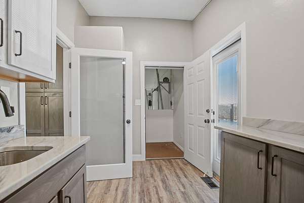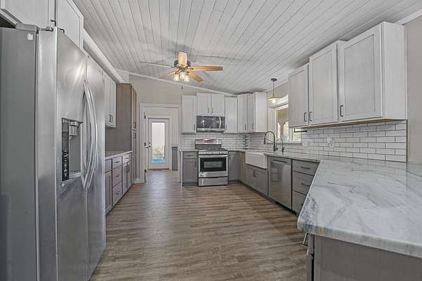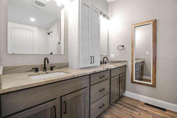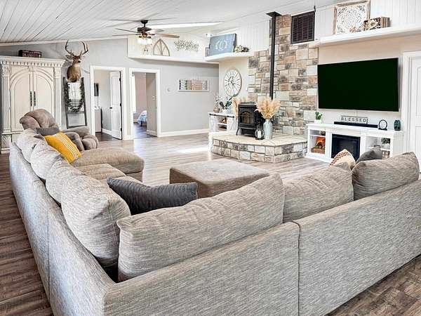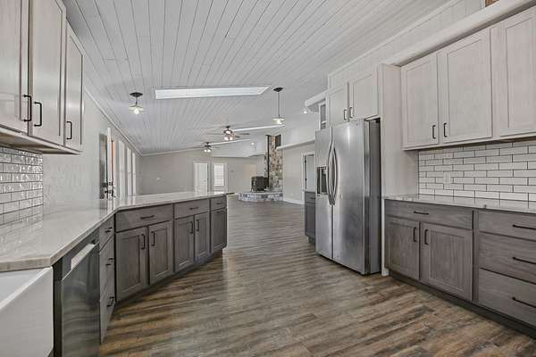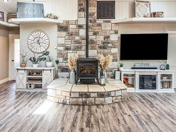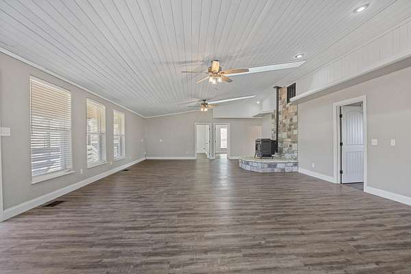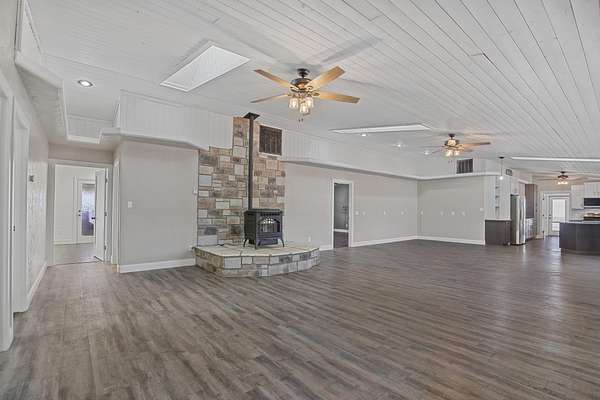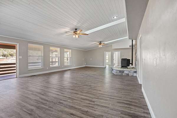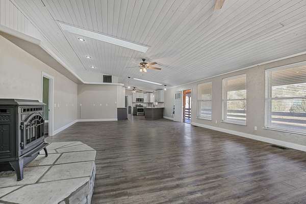 - Double Sinks, Eat in Kitchen, Flooring, Jet Tub, Pellet, Quartz Countertops, Skylight, Stove, Tub & Shower, Walk-In Closet, Wndo CVRNGS T/O, Wood