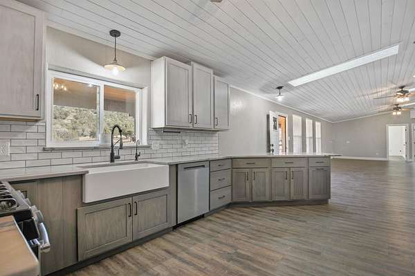 Welcome to one of High Rolls' most rare and remarkable properties--an updated 4-bedroom, 2-bath mountain retreat set on nearly 12 acres of flat, usable land bordering National Forest. The home has been completely remodeled and features a bright, fully open-concept floor plan with brand-new flooring, fresh paint, and newly installed cabinetry throughout, creating a cohesive modern look with excellent storage. Additional upgrades include quartzite countertops, upgraded fireplace stonework, hardwood doors, trim and baseboards, and a new epoxy-coated garage floor. The heart of the home is both functional and inviting, with thoughtful finishes and stunning mountain views enjoyed from the large, raised deck. For those needing exceptional workspace or storage, the property includes a massive 40x80 insulated shop with 15-foot lean-tos on each side, equipped with electricity, water, and fiber optic internet already connected. Multiple barns, sheds, pens, and a large chicken coop--all with water access--make this a truly horse-ready property with ample room for livestock, farming, or equipment. A newly constructed orchard with wildlife fencing enhances the homestead appeal, while the certified high-producing private well (15 GPM), regarded by local experts as one of the best on Westside Road, adds exceptional value. A new leach field for the septic system installed in 2022 provides peace of mind for years to come. Abundant wildlife frequents the property, with deer and elk regularly seen grazing year-round, creating the feel of a private nature retreat. Enjoy uninterrupted sunrise and sunset views from multiple decks, the serenity of the pines, and the rare flat topography--an uncommon find in the mountains, especially with direct National Forest access. If you've been searching for the perfect blend of luxury, land, views, and functionality, this property delivers it all. Schedule your showing today--sellers are motivated and open to all reasonable offers. Seller holds an inactive NM Real Estate license. Check out the 3D virtual tour at: https://my.matterport.com/show/?m=GPCbrbAkJjT&mls=1