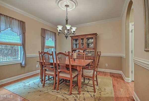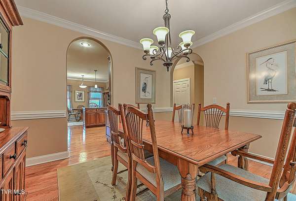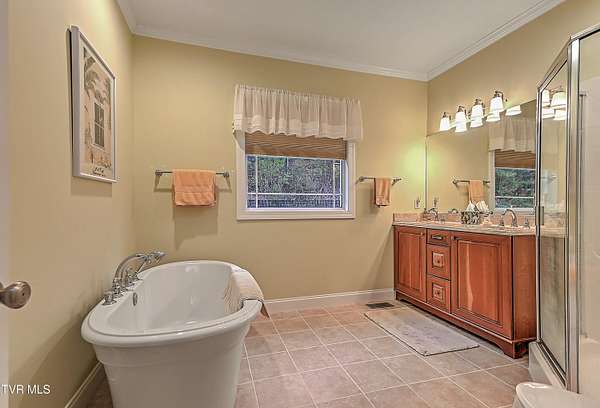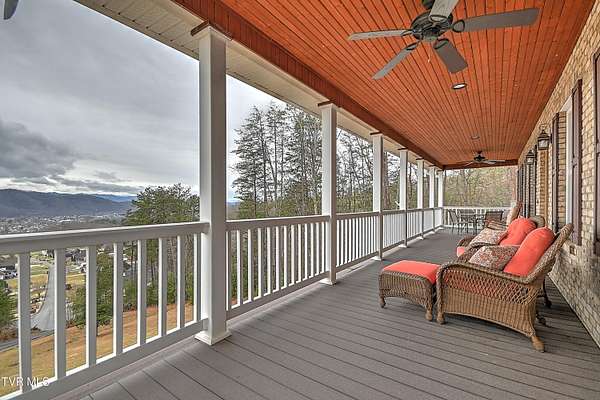 Perched partway up Holston Mountain, this stunning brick home offers exceptional privacy and breathtaking views of the Unaka and Lynn Mountain ranges. Though the home spans three levels, it is thoughtfully designed for convenient one-level living and features the rare advantage of a three-car garage. Enter from the oversized garage into a meticulously maintained interior that feels nearly new. The kitchen showcases maple cabinetry, stainless steel appliances, a pantry, and a built-in desk area. Enjoy casual meals at the breakfast bar while engaging with the chef, or dine at the breakfast table while taking in the mountain views. The main level has 9' ceilings giving the great room both an open and inviting, yet warm and cozy atmosphere. Gleaming hardwood floors throughout the main level enhance the home's pristine condition. The main level also includes a private office with mountain views, a serene primary suite overlooking the woods, and a spa-like bath with a soaking tub and glass-enclosed shower. Additional highlights include ample closet space, a dedicated laundry room, and a formal dining area. Upstairs, you'll find two private bedrooms with charming dormer windows framing magnificent mountain views, a sewing or craft room, and a full three-piece bath. The partially finished daylight basement provides even more potential, featuring high ceilings, multiple windows, rough-in plumbing for a bathroom, and radon mitigation. Wildlife abounds in this location. Enjoy sitting on your large covered porch to view the deer and the sunrise or sunset! A great feature is that this home offers privacy without isolation. Located at the end of a cul-de-sac in a quiet two-street neighborhood with a low HOA fee of just $100 per year, it sits above neighboring rooftops with no close neighbors. Only three miles from shopping, dining, and medical facilities, you'll enjoy the best of both worlds-peaceful mountain living with everyday conveniences close by. Best of all, much of the land one lot behind the home borders the Cherokee National Forest, ensuring lasting natural beauty and protection from future development. Outdoor enthusiasts will appreciate proximity to the Appalachian Trail, Wilbur and Watauga Lakes, and excellent fishing on the Doe and Watauga Rivers. Dont delay in coming to view this immaculate home on 2.17 acres. with breathtaking views. All information in this listing is considered accurate but should be verified by buyer/buyer agent.
