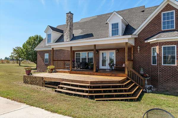 Stunning Custom Brick Home on Over 43 Acres Welcome to your dream retreat! This exceptional custom brick home offers 5 spacious bedrooms and 3.5 bathrooms, perfectly situated on over 43 acres of picturesque land. Ideal for both relaxation and entertaining, the open-concept layout seamlessly connects the living, dining, and kitchen areas. The primary bedroom, located on the main floor, features a split floor plan for added privacy and convenience. Step outside to the custom back porch, accessible from both the back door and the primary bedroom, where you can enjoy serene views of the expansive property. Additional highlights include a refreshing private pool, perfect for summer gatherings, as well as a practical storage shed that will remain on the property. Don't miss the opportunity to make this unique home your own!