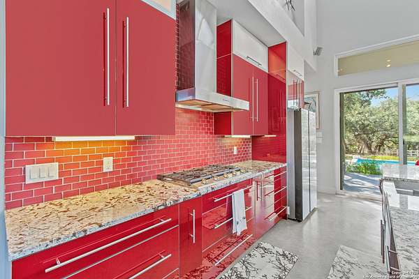 Experience unmatched privacy and Hill Country luxury at 1280 Stoney Ridge Rd in Bulverde, TX-an extraordinary 39.33-acre estate nestled in the prestigious Comal Trace subdivision. Set a quarter mile off the road, this custom-built, single-story modern home offers 4 spacious bedrooms, 4 full bathrooms, and 2,550 sq. ft. of refined living space, designed with polished concrete floors, soaring 10'-20' ceilings, and a striking double-sided gas fireplace as the heart of the home. Enjoy indoor-outdoor living with an open-concept layout, transom windows, and oversized picture windows that flood the home with natural light while framing lush greenbelt views. The chef's kitchen is a showstopper, boasting sleek modern cabinetry, granite countertops, stainless steel appliances, a breakfast bar, and a walk-in pantry. The primary suite feels like a retreat with 20' ceilings and a spa-like bathroom, while all secondary bedrooms feature walk-in closets. The oversized utility room makes daily living a breeze, and recent upgrades include a new water softener (2023). Step outside to your volleyball-style pool, expansive covered patio, mature landscaping, and separate detached garage/shop. Horse lovers will appreciate the equestrian amenities: a riding arena, tack barn, wash rack, horse troughs, and a dedicated horse run. The property features wildlife and ag exemptions, well water, and includes two contiguous parcels, making it the largest tract in Comal Trace. Tucked away in serene seclusion yet just minutes to Hwy 281, local shopping and dining, and only 22 miles to San Antonio International Airport, this one-of-a-kind estate combines luxury, lifestyle, and long-term investment potential. Come experience modern country living at its finest!
