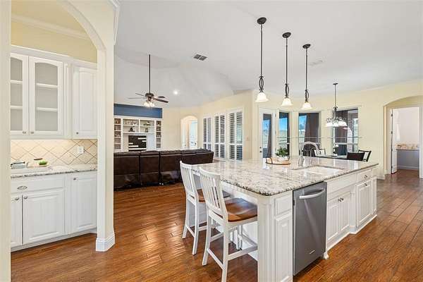 - Built-In Features, Cable TV Available, Chandelier, Decorative Lighting, Double Vanity, Eat-In Kitchen, Flat Screen Wiring, Granite Counters, High Speed Internet Available, In-Law Suite Floorplan, Kitchen Island, Natural Woodwork, Pantry, Second Primary Bedroom, Walk-In Closet(s)