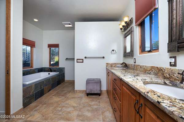 Stunning Custom Southwest Territorial Home on 30 Acres Bordering State Land. Experience the perfect blend of luxury, privacy, and wide-open space with this exceptional custom-built Southwest territorial home, set on 30 rolling acres and bordered by over 130,000 acres of pristine State Trust Land. Designed by renowned builder Scott Pottinger, this meticulously maintained residence offers 3 bedrooms, 3 bathrooms, and refined finishes throughout. The gourmet chef's kitchen is a culinary dream, featuring premium Dacor appliances, a gas cooktop, warming drawer, granite island with prep sink, and rich alder cabinetry. The open-concept layout flows seamlessly into the spacious great room, anchored by a custom slate-surround wood-burning fireplace and 12-foot exposed beam ceilings The expansive master suite is a private retreat, complete with a six-foot soaking tub, slate walk-in shower, and a generous walk-in closet. All bedrooms open directly to a wraparound porch, inviting in the serene natural surroundings. Outdoors, enjoy a sparkling 60-foot lap pool and spa, beautifully landscaped grounds with custom masonry walls, wrought iron accents, and breathtaking views in every direction. Additional features include Pella windows and doors, granite countertops throughout, a bright split floor plan, and an oversized 3-car garage designed to fit most trucks. This unique horse-friendly property includes a private registered well, full RV hookup, and is located on a paved road. With potential for subdivision and proximity to hiking, horseback riding trails, restaurants, golf, shopping, and medical care, this one-of-a-kind home offers unmatched comfort and opportunity. Truly a must-see property for those seeking luxury living in harmony with nature. Furnishings are negotiable.