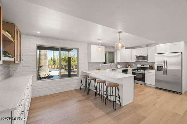 Surround yourself with exquisite desert landscaping and sweeping mountain views on 3.5 acres. Ideal for equestrian living, this property features a large horse arena and is conveniently located near the scenic trails of Saguaro National Park West. The interior has been completely renovated from top to bottom, including a new roof and new windows throughout, offering modern comfort and peace of mind. A sparkling pool adds to the appeal, creating the perfect retreat for relaxing or entertaining. This is a truly special home that offers space, privacy, and a lifestyle you'll never want to leave. Agent/Owner