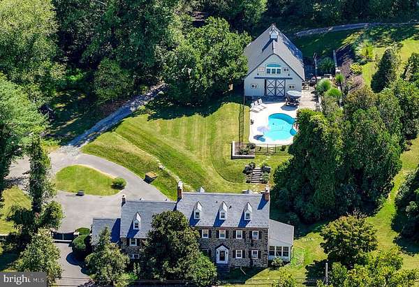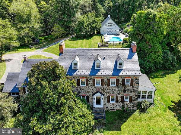 Live authentically. Quintessential stone farmhouse circa 1800 on 14.65 acres of rolling pastoral land. This piece of history has been lovingly restored with original details intact. A very functional farmette with three pastures, five stall barn, run-in shed & fenced exercise arena. Incredible party barn with loft and a plethora of possibilities. Sublime sparkling pool perched with a view... truly an oasis. Float while you gaze at your four legged friends. Five fireplaces. Very special setting that exudes soul and captures your heart. Subdivision potential. Cultivate your existence. The art of uniting human and home. - 3.5 baths - 3 renovated bathrooms - 2 bathrooms with bidets - New kitchen - All new appliances - 2022 Slate roof - Jacuzzi tub - Saltwater pool